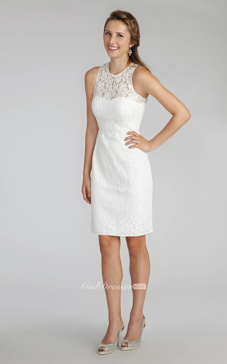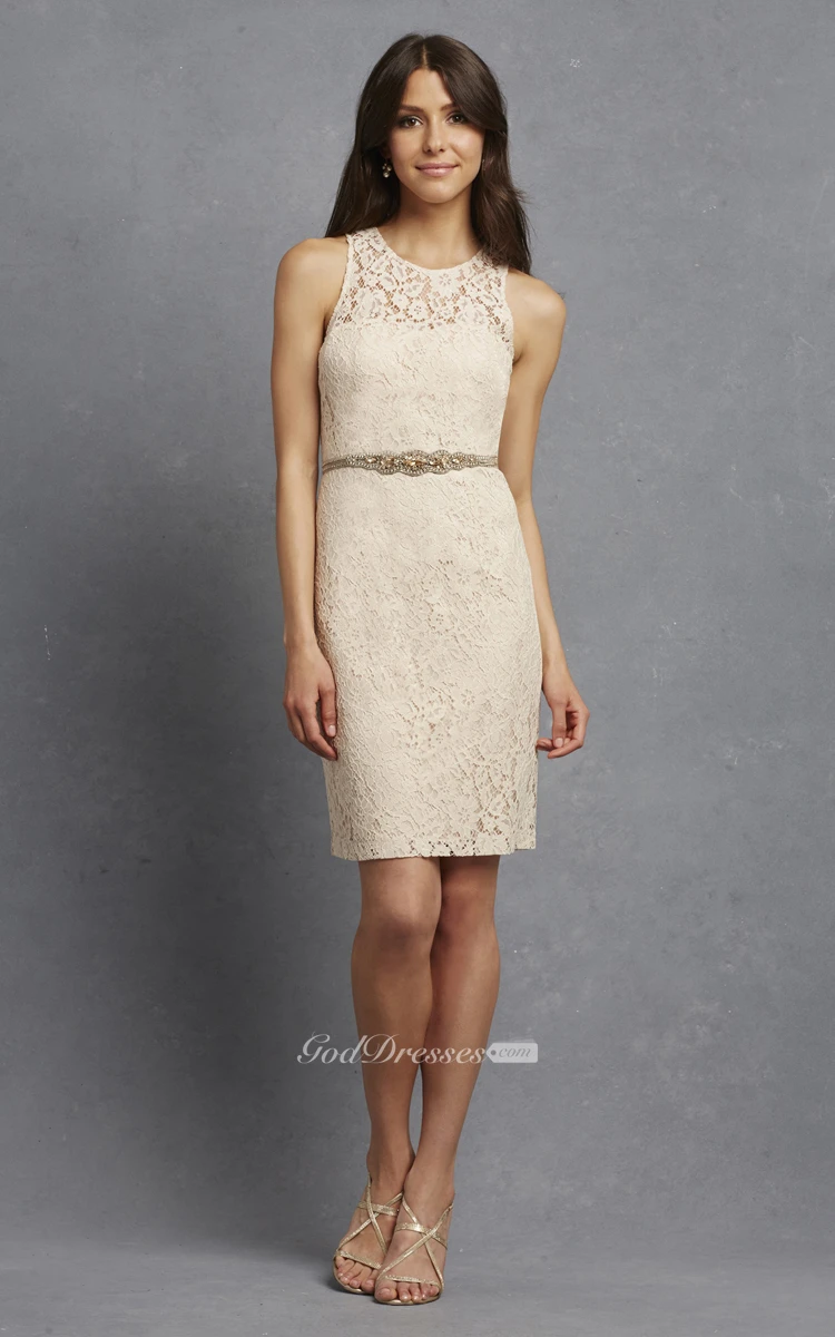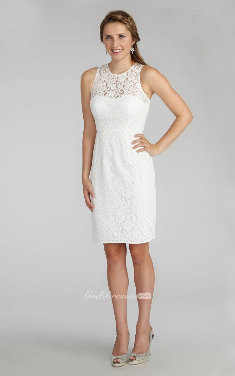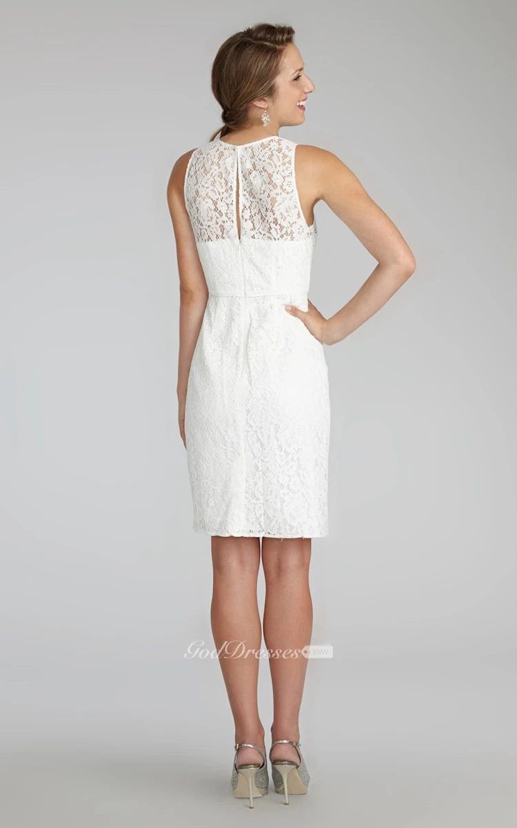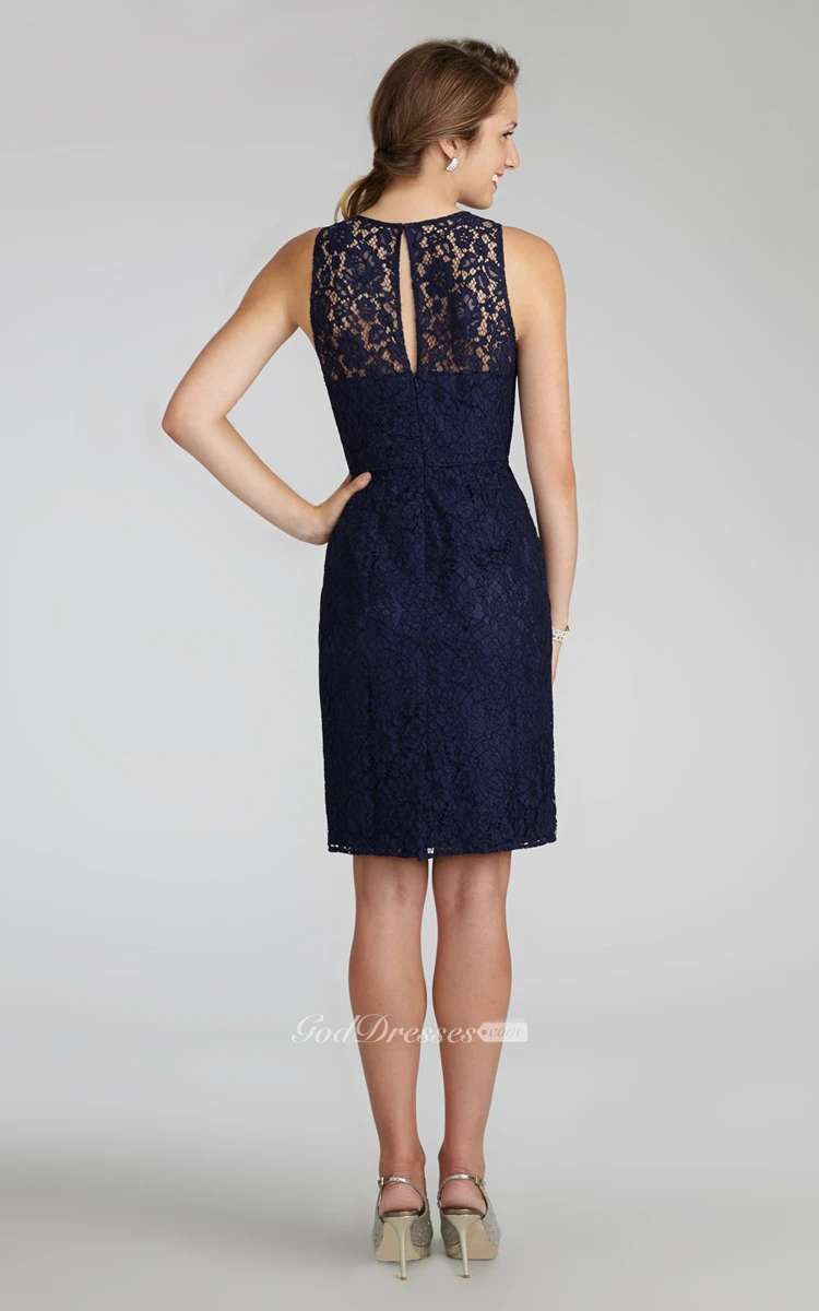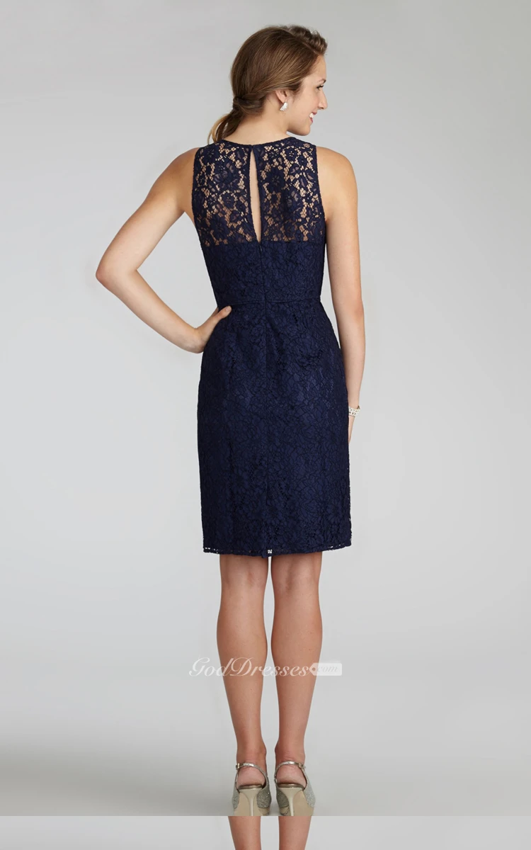Lace Jewel-Neck Elegant Dress With Keyhole Back