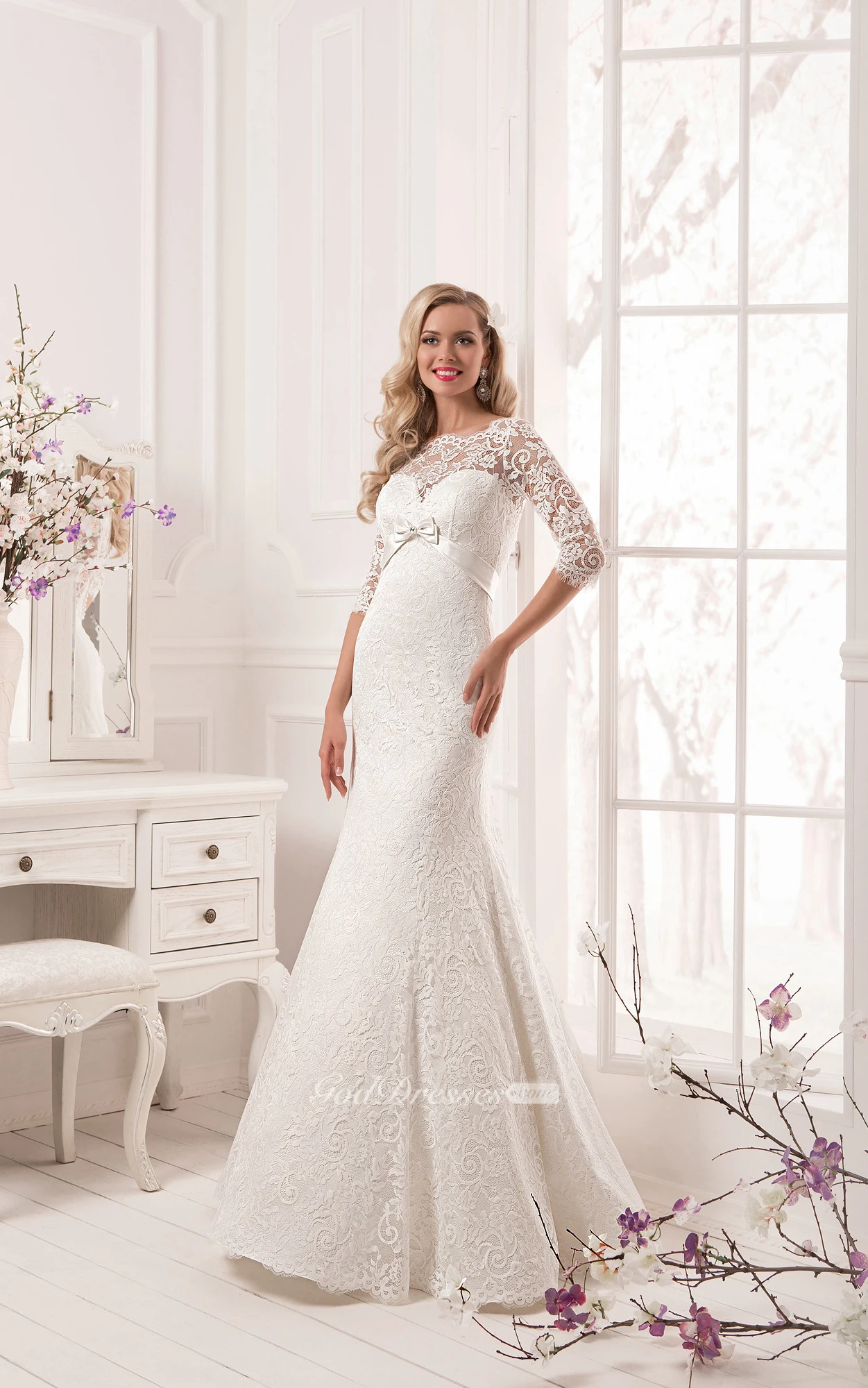 Lace Long Sleeve Bow Floor Length Sheath Dress