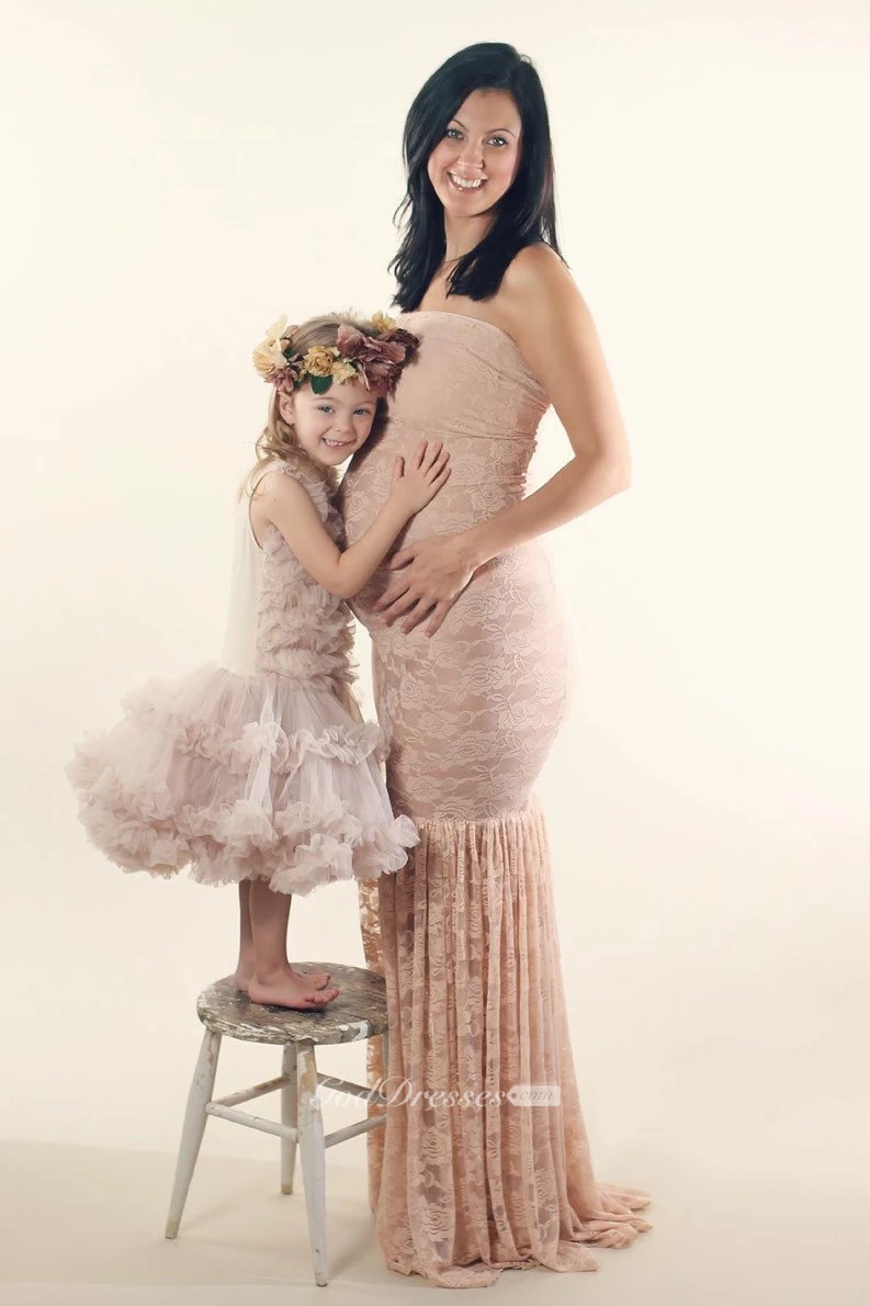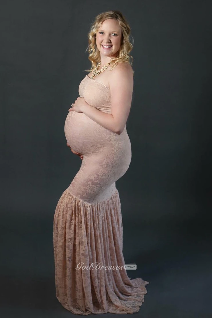 Lace Mermaid Sleeveless Strapless Maternity Dress