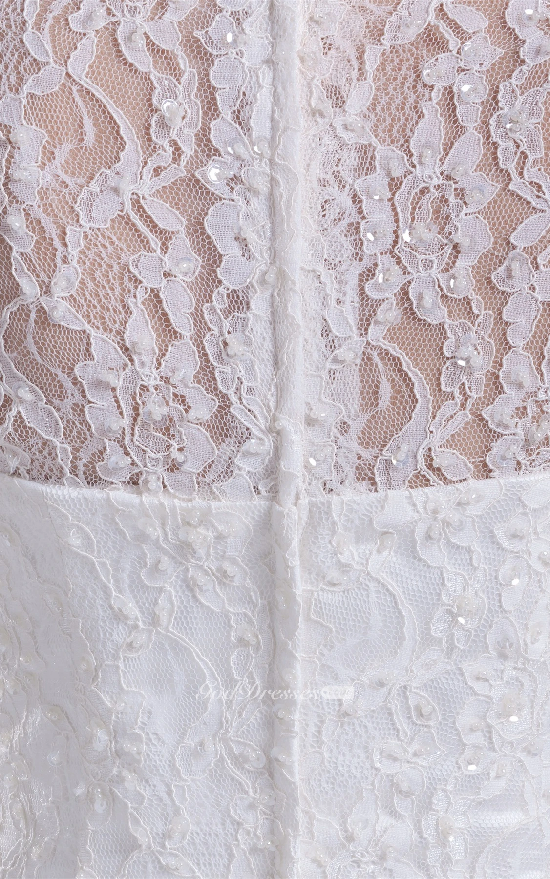Lace Pleated Mermaid Sweep Train and Dress With Illusion Neckline