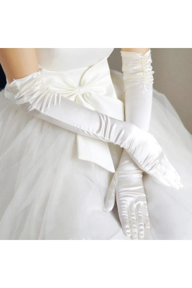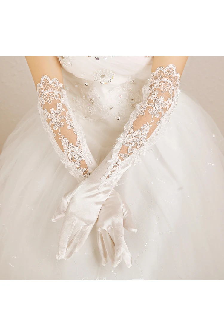 Lace Satin Plus Long Elbow White Wedding Gloves