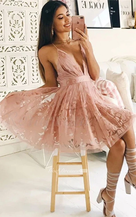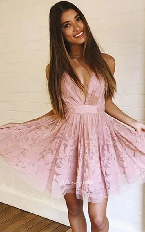 Lace Short A Line Sleeveless Casual Homecoming Dress with Ruffles