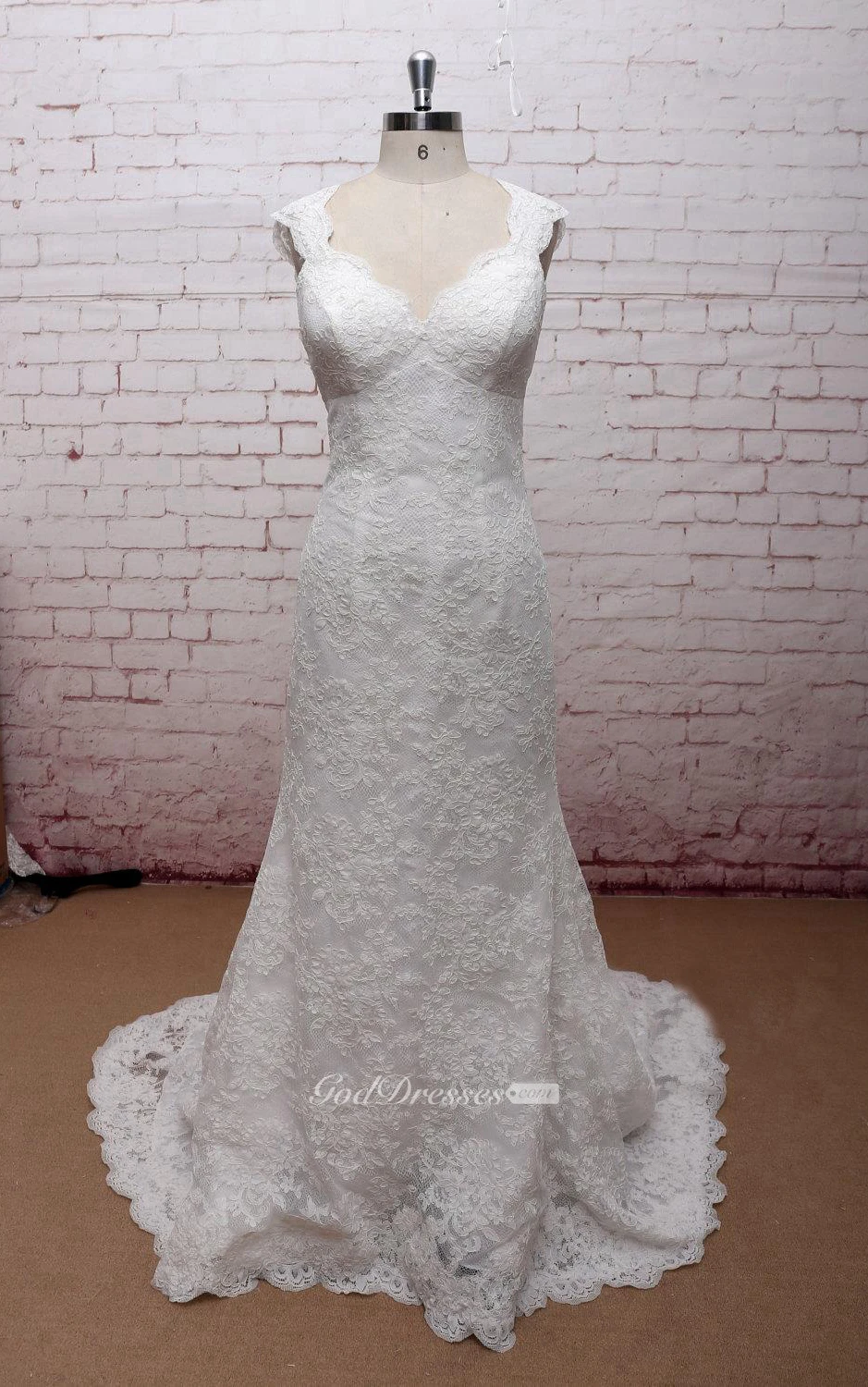Lace Sleeveless Mermaid Bridal Gown With Scalloped V-Neck