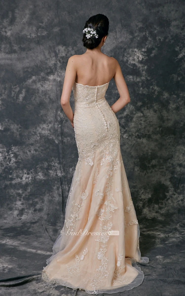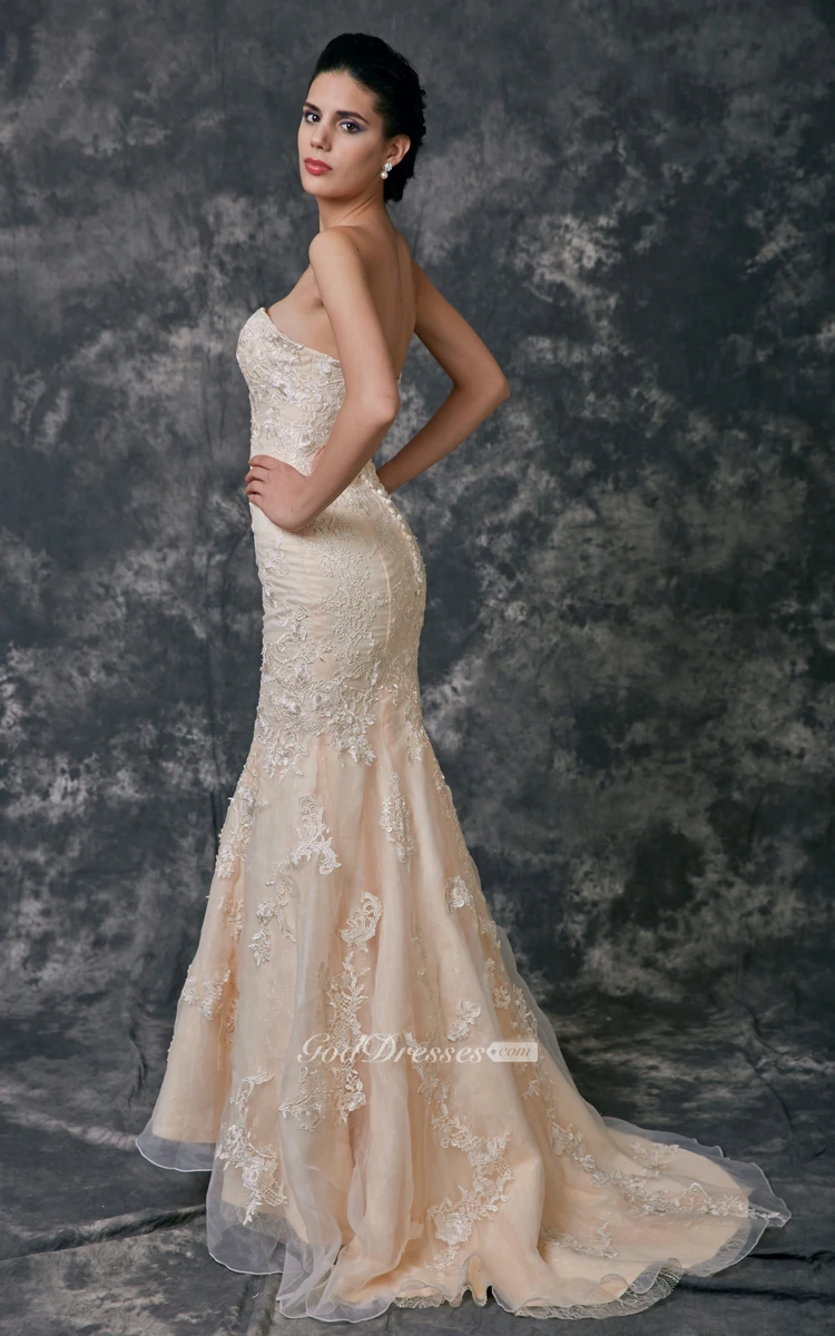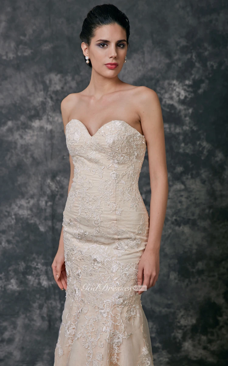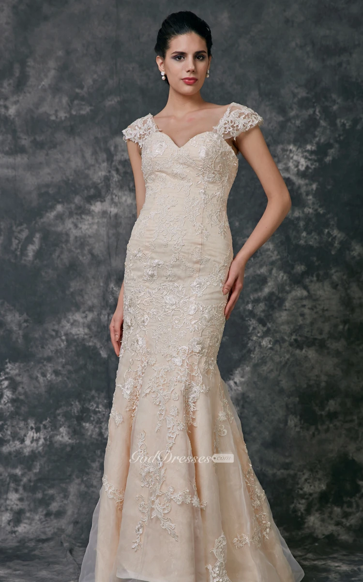 Lace Sweetheart Mermaid Gown With Removable Cap Sleeves