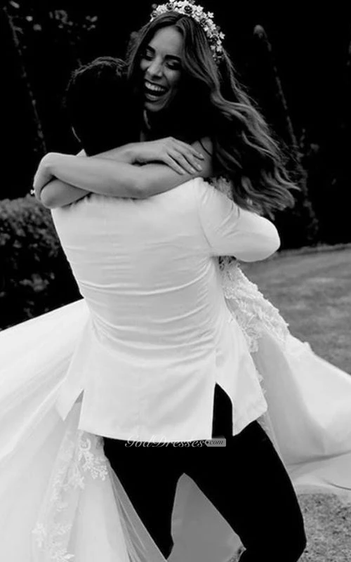 The wedding dress was sewed perfectly, and is quite the elaborate dress at such a reasonable price. The lace and tulle fabric is gorgeous. Thank you so much!