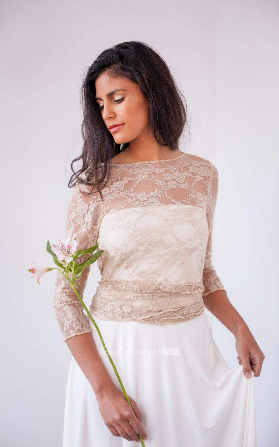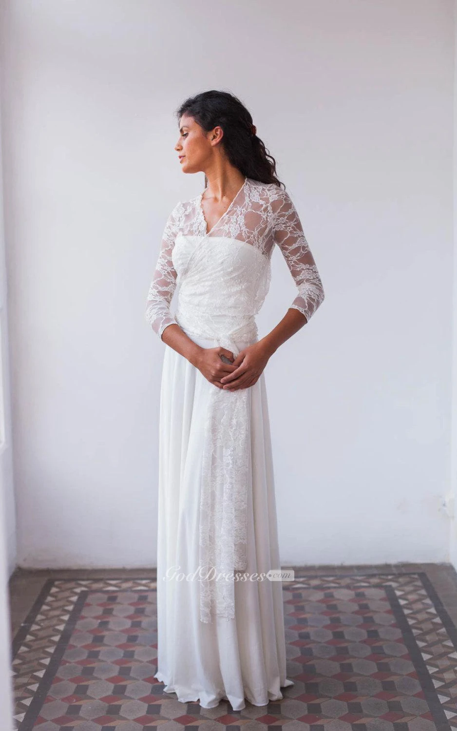 Bohemian Long Sleeve Lace Floor-Length Sleeve With Draping