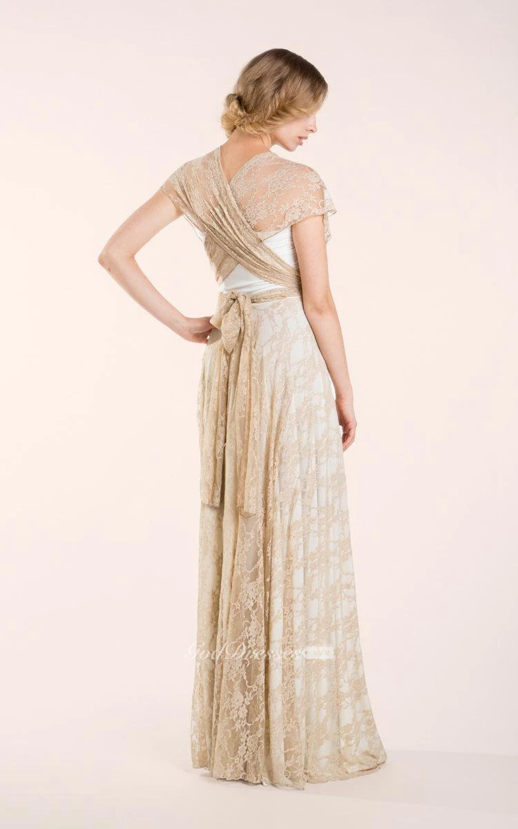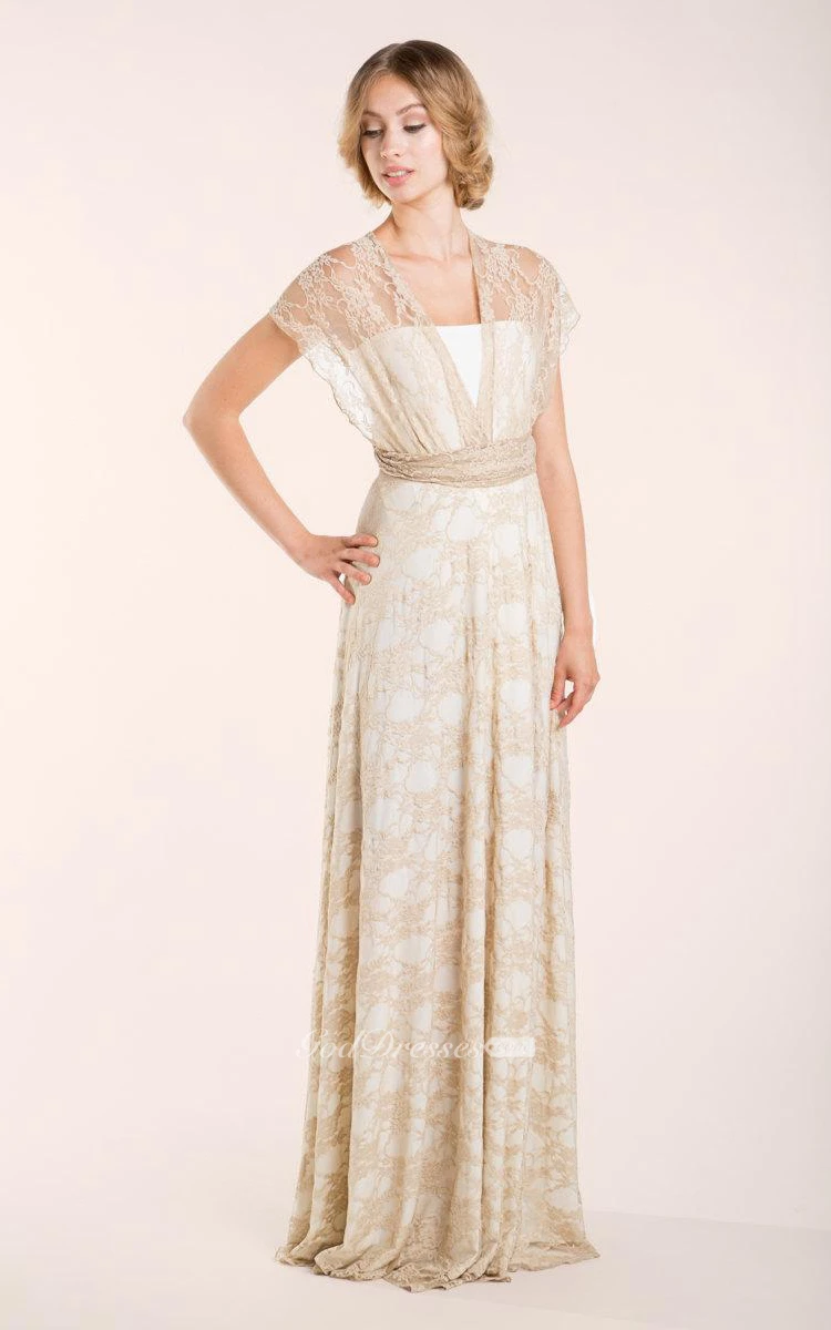 Vintage Sheath Cap-Sleeve Lace Dress With Bow