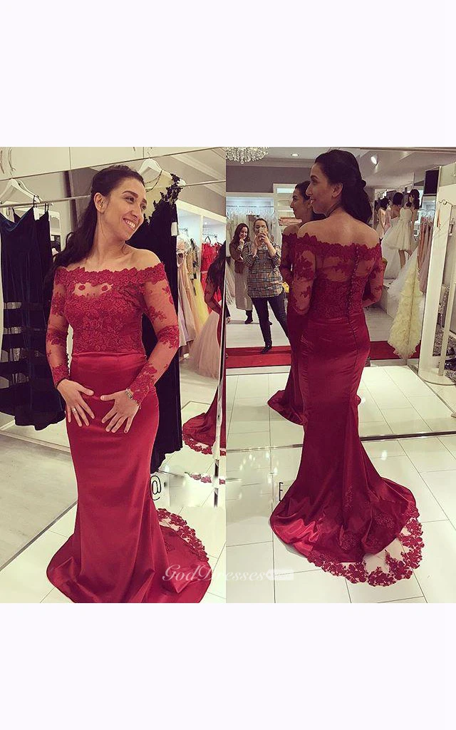 Lace Yoke Off-the-shoulder Trumpet Taffeta Gown With Lace