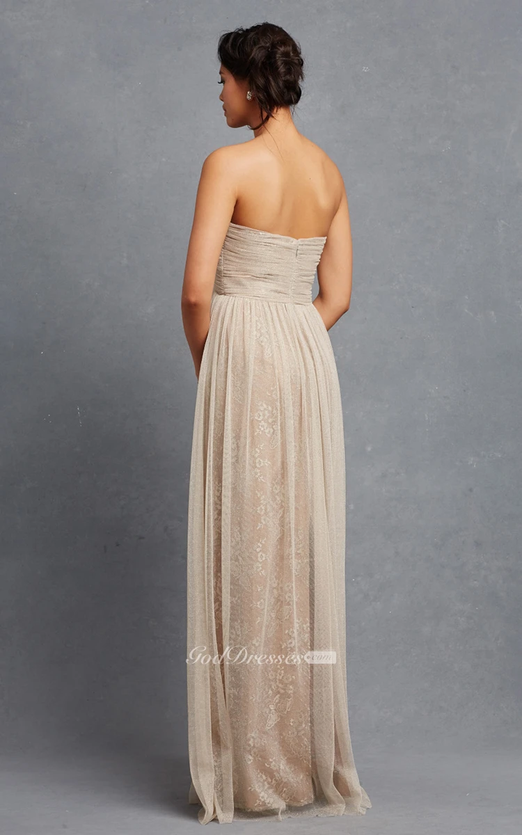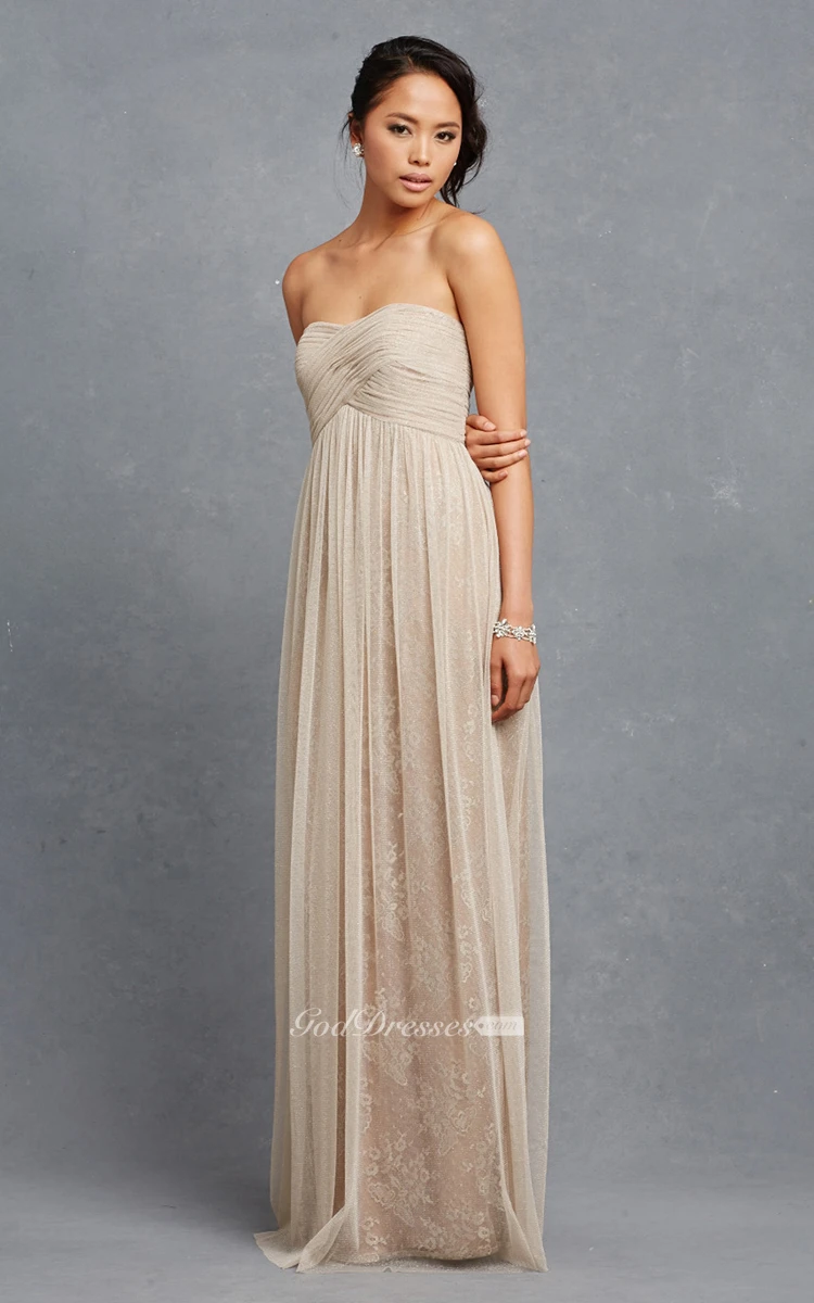Lavish Long Tulle Dress With Crisscross Ruching
