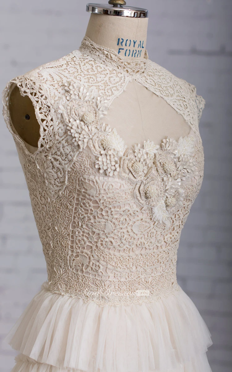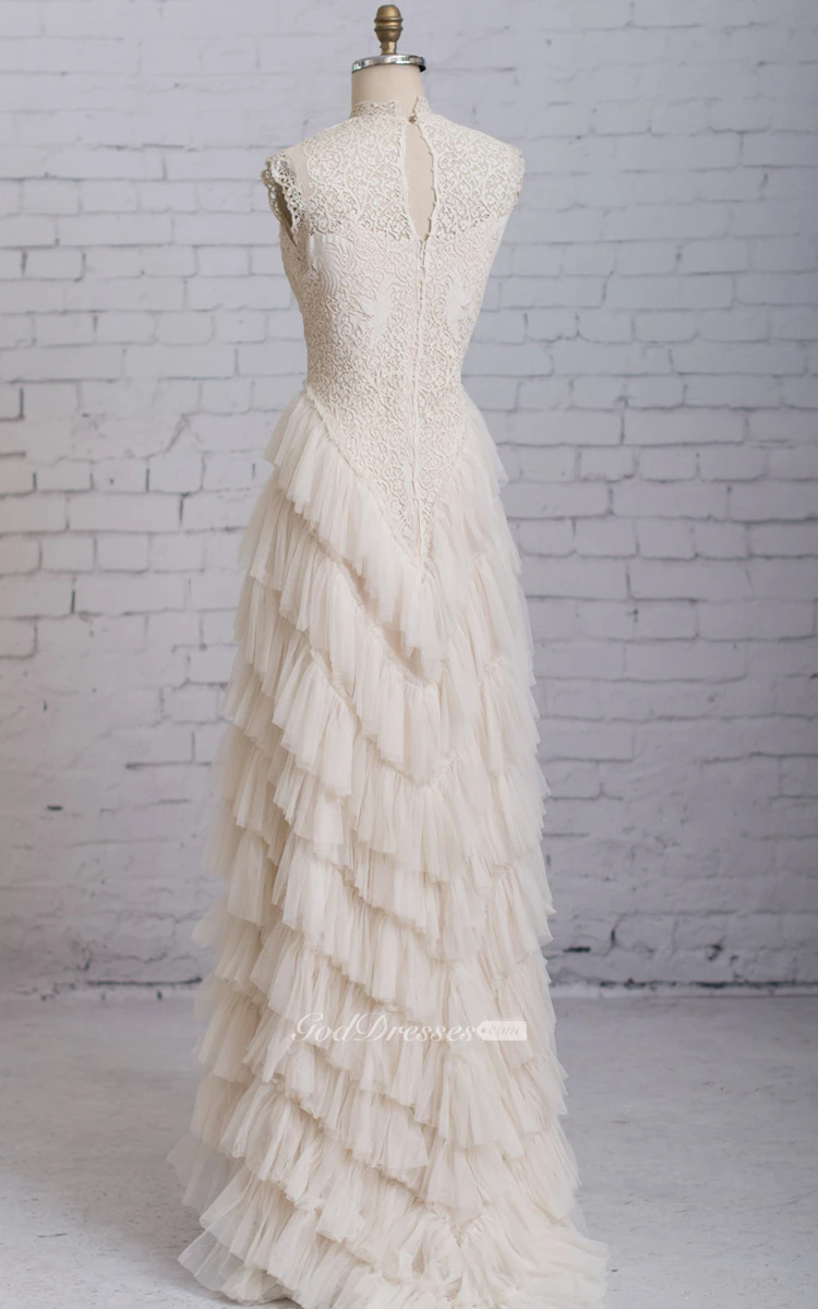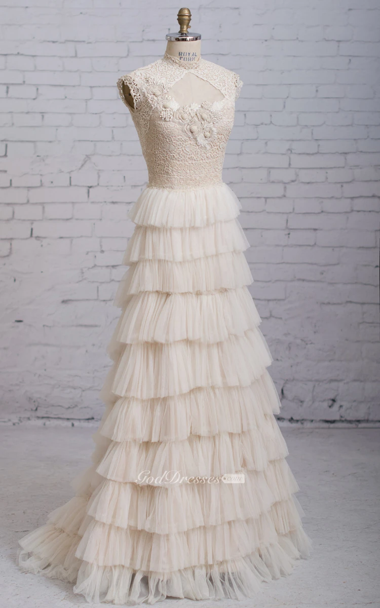 Layered Exquisite High-Neck Gown With Keyhole Backstyle
