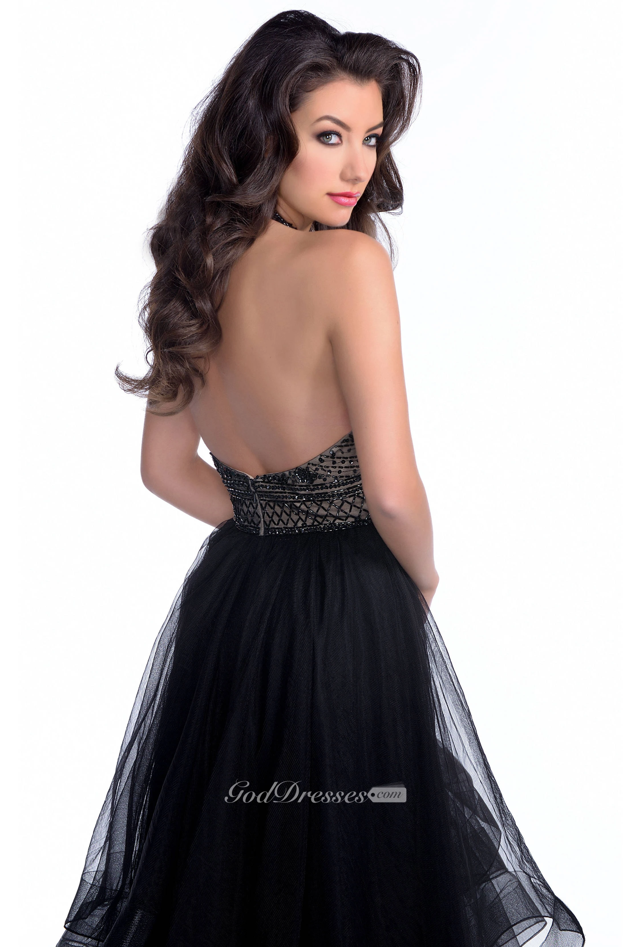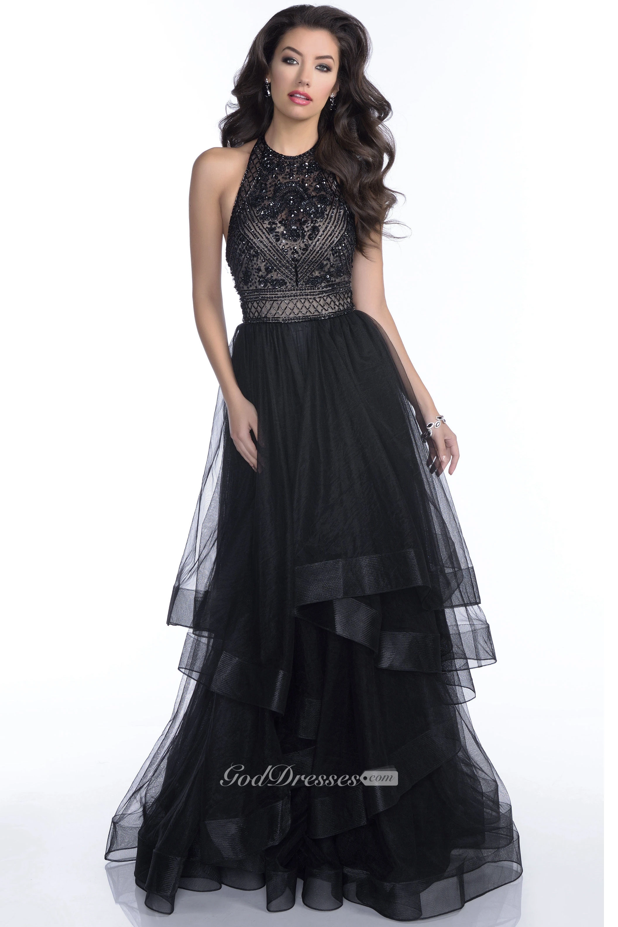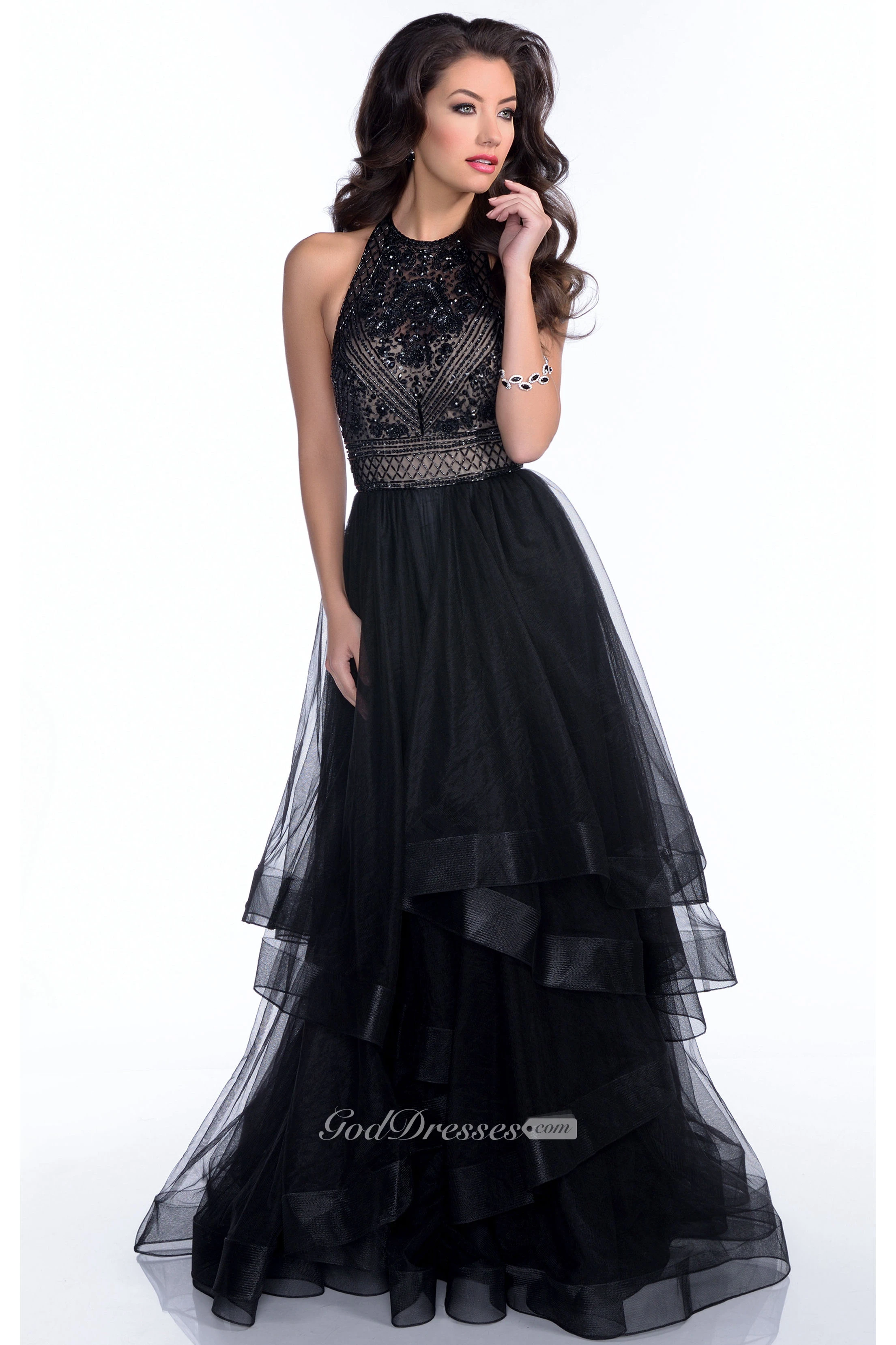 Layered Tulle Sleeveless Prom Dress With Rhinestones And Open Back