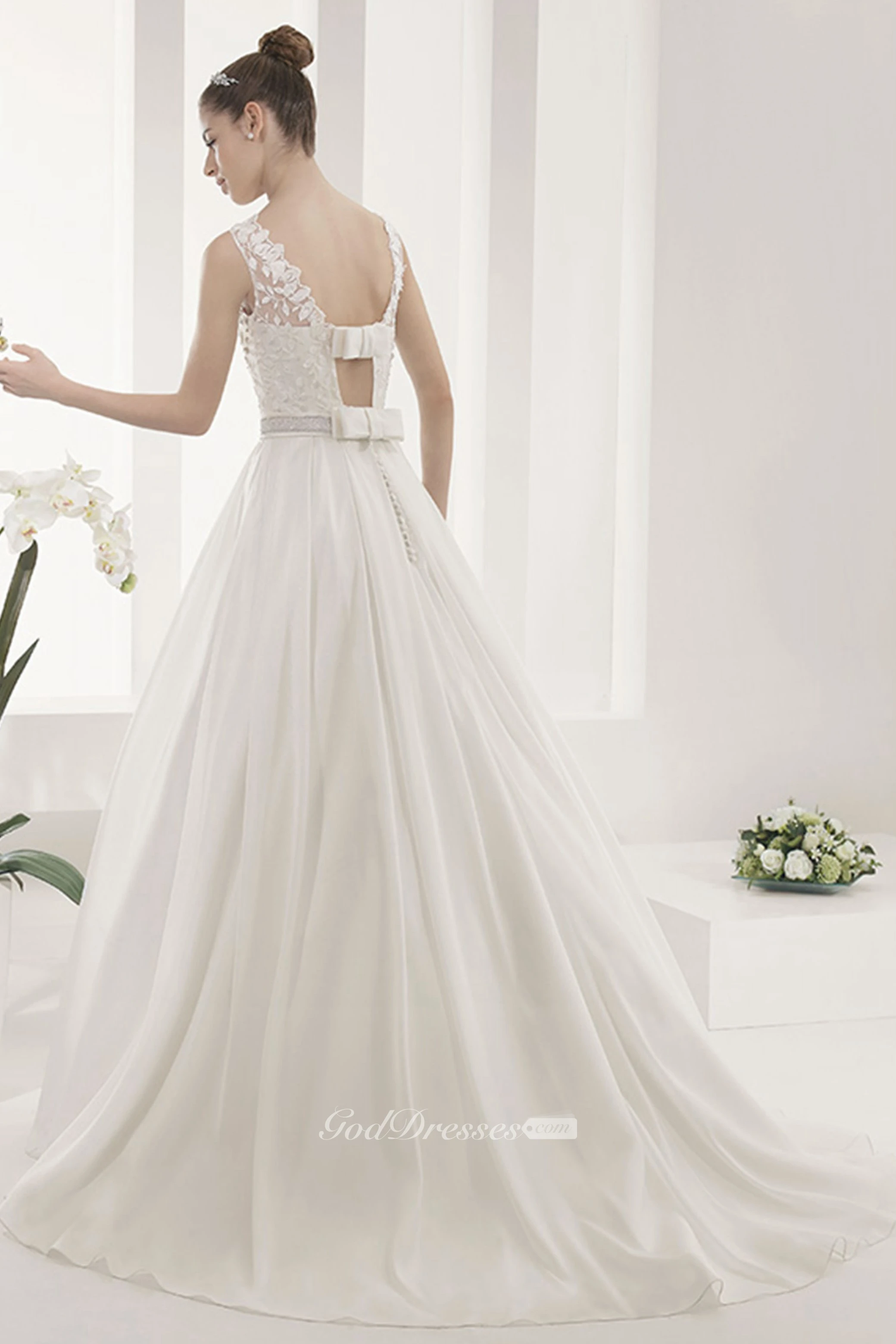 Leaf-appliqued Top Taffeta Wedding Gown With Back Bows