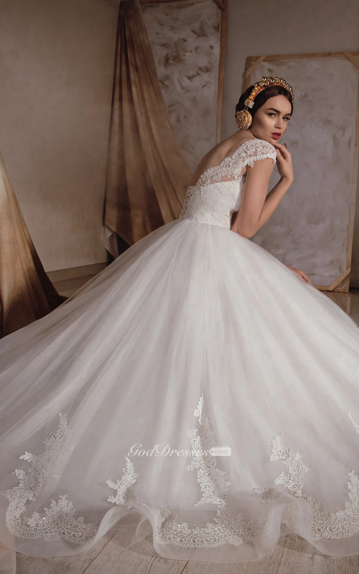 Long A-line Organza Wedding Dress With Lace Bodice And Appliques