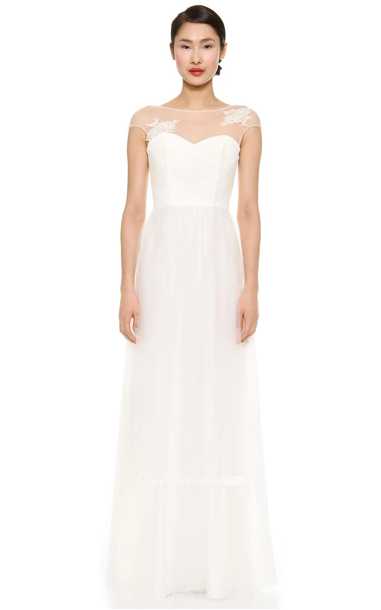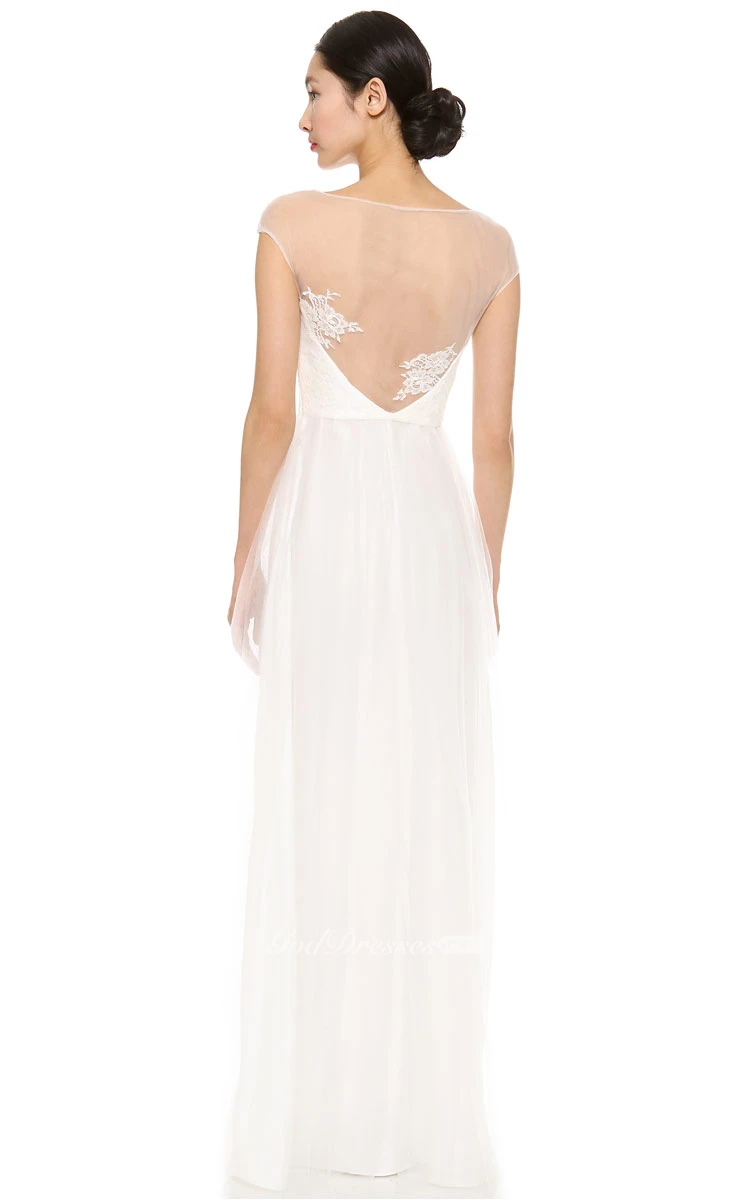 Long Bateau A-line Organza Dress With Illusion Back Style