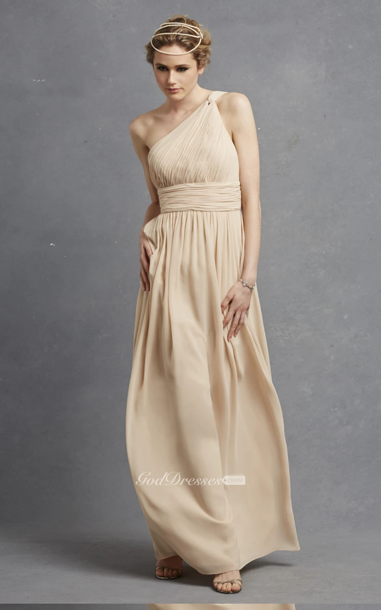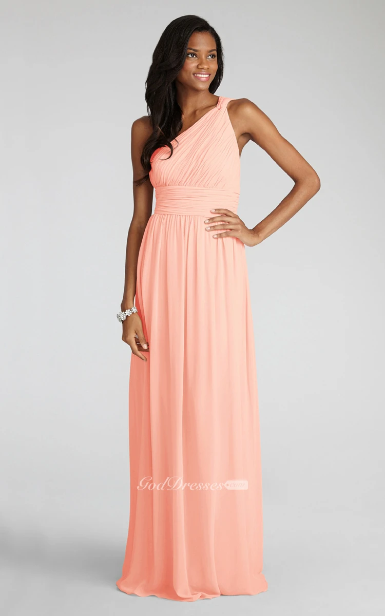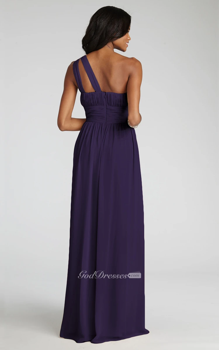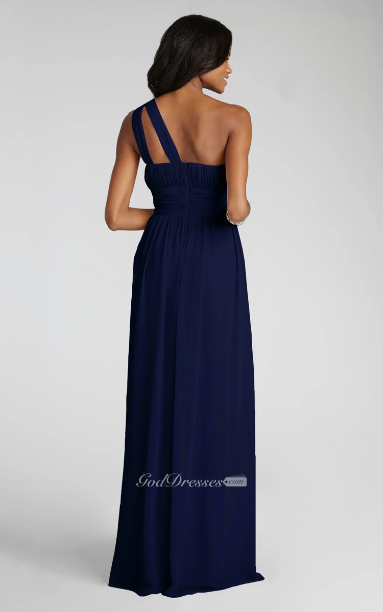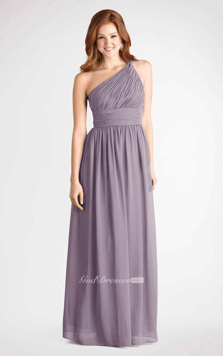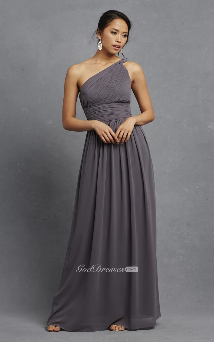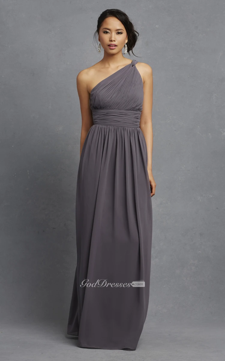 Long-Chiffon Modern One-Shoulder Dress With Ruching