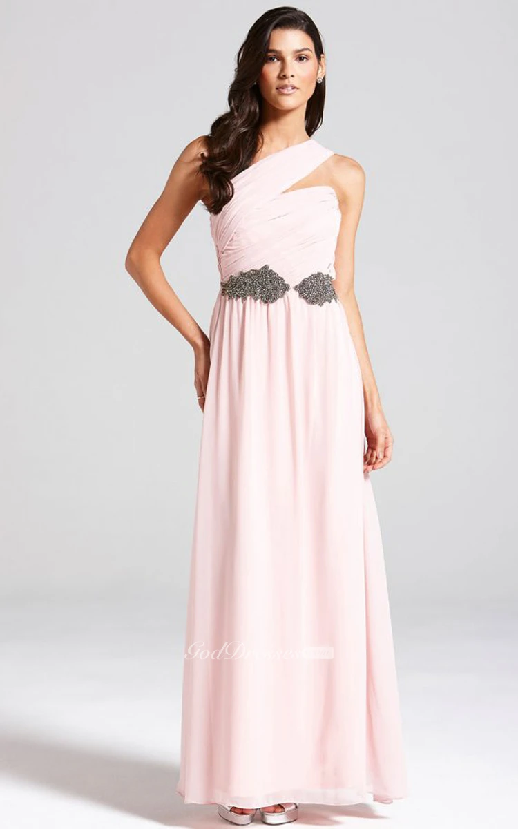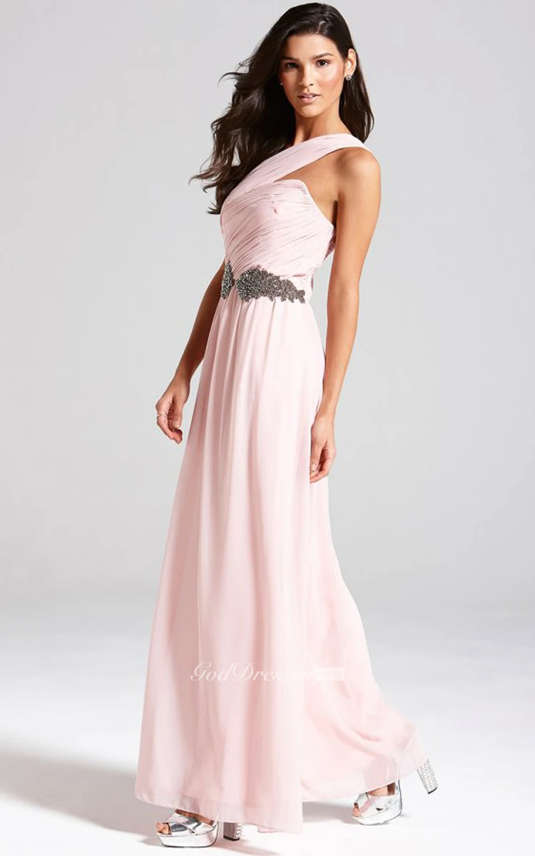 Long Chiffon One-Shoulder A-Line Chic Dress With Sash