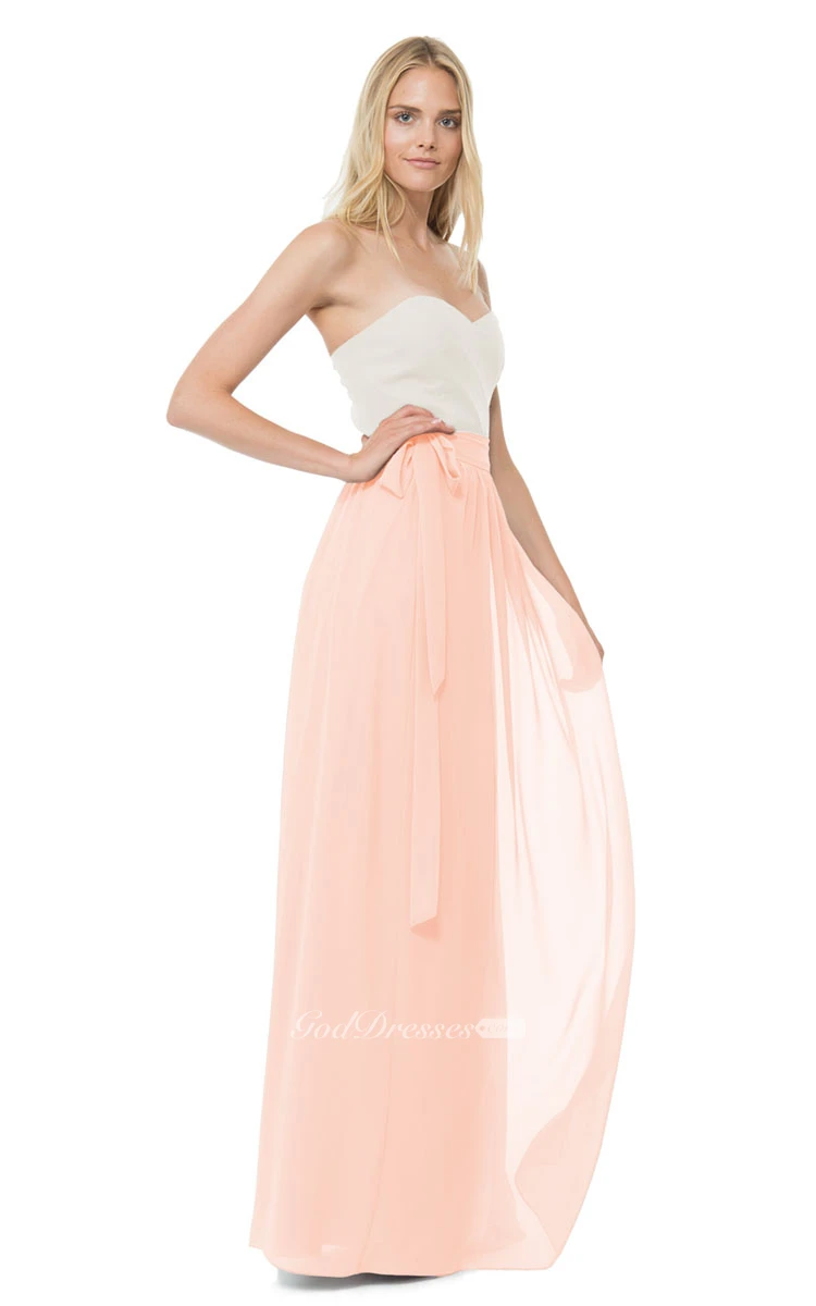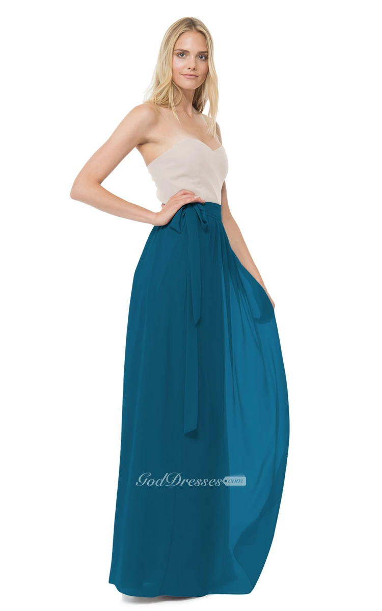 Long Chiffon Sweetheart Dress With Bow Sash