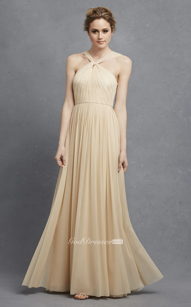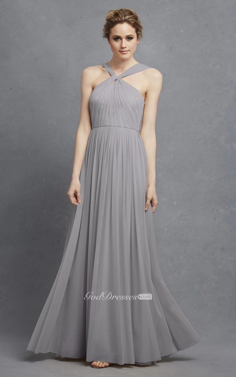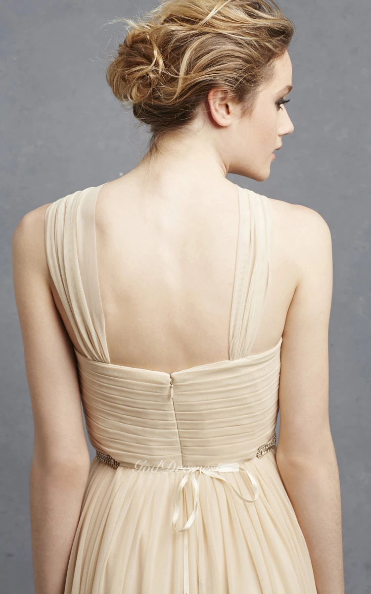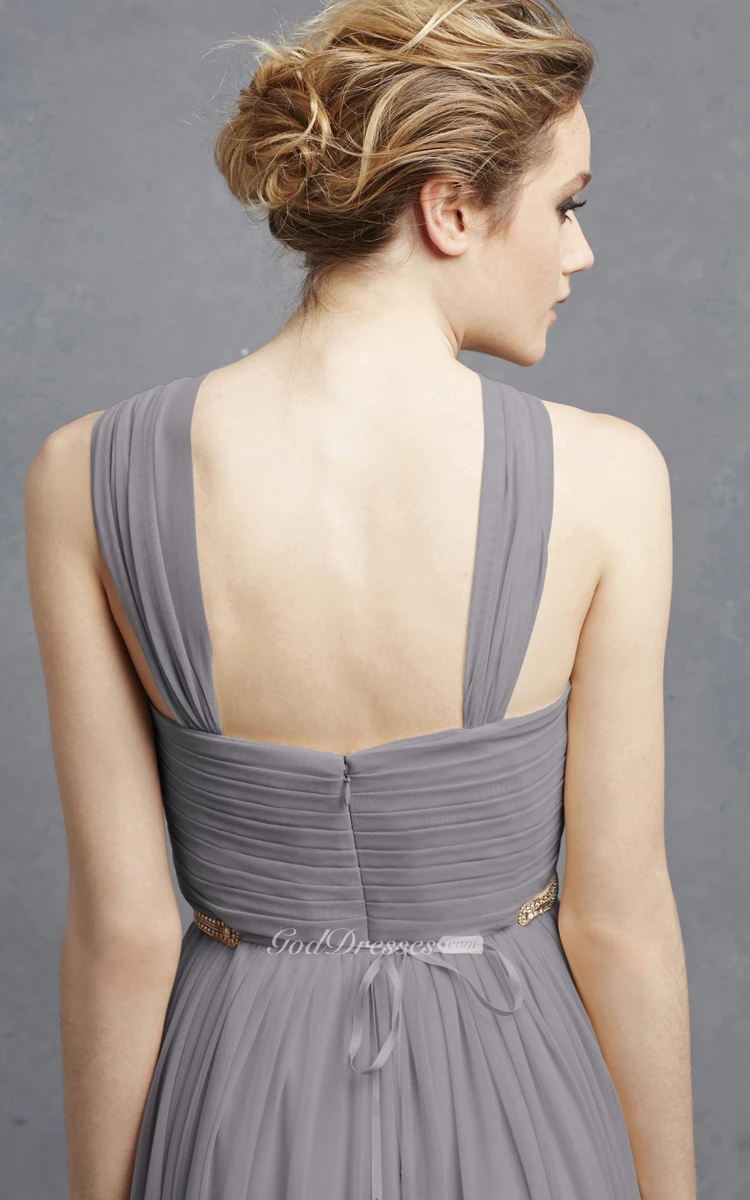 Long-Chiffon Unique Dress With Pleats And Beading