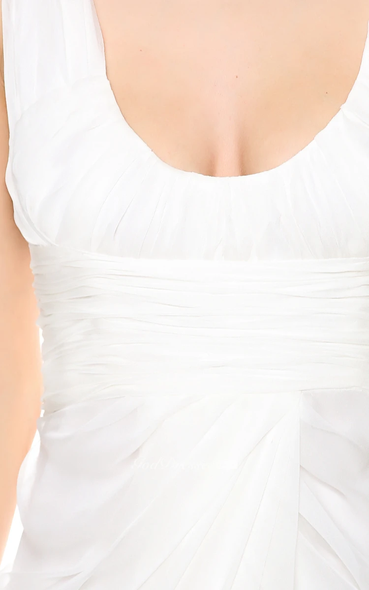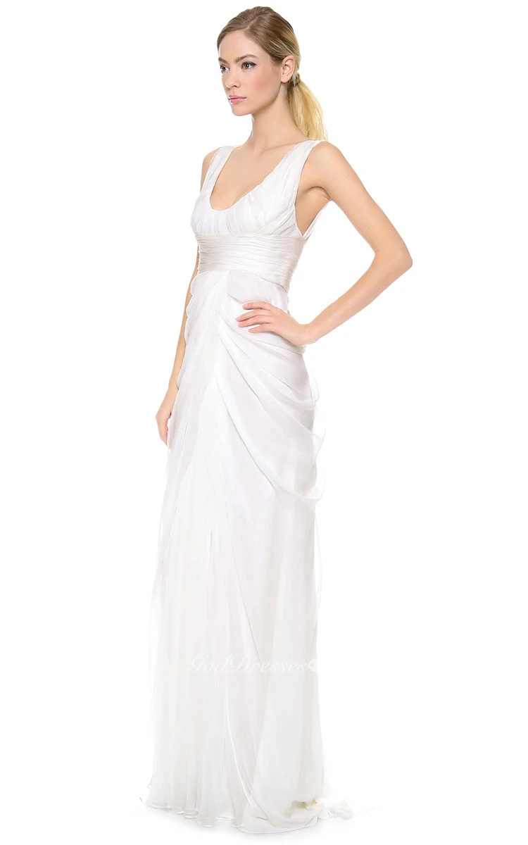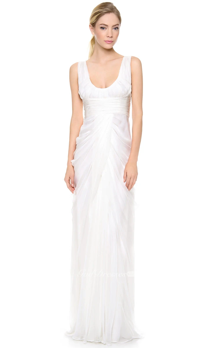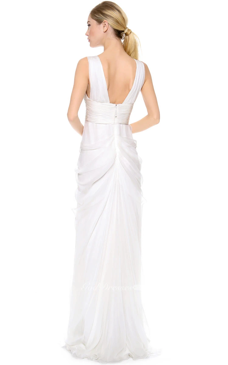 Long Deep-V Neckline Empire Taffeta Dress With Low-V Back Style