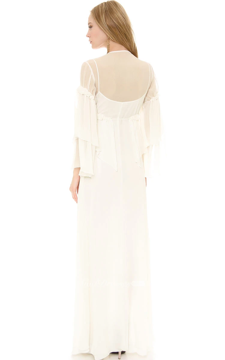 Long Deep-V Sheath Chiffon Dress With Illusion Back Style