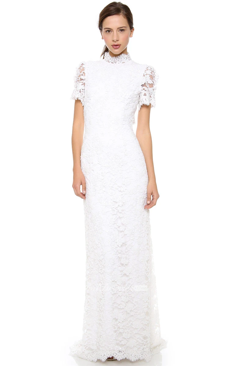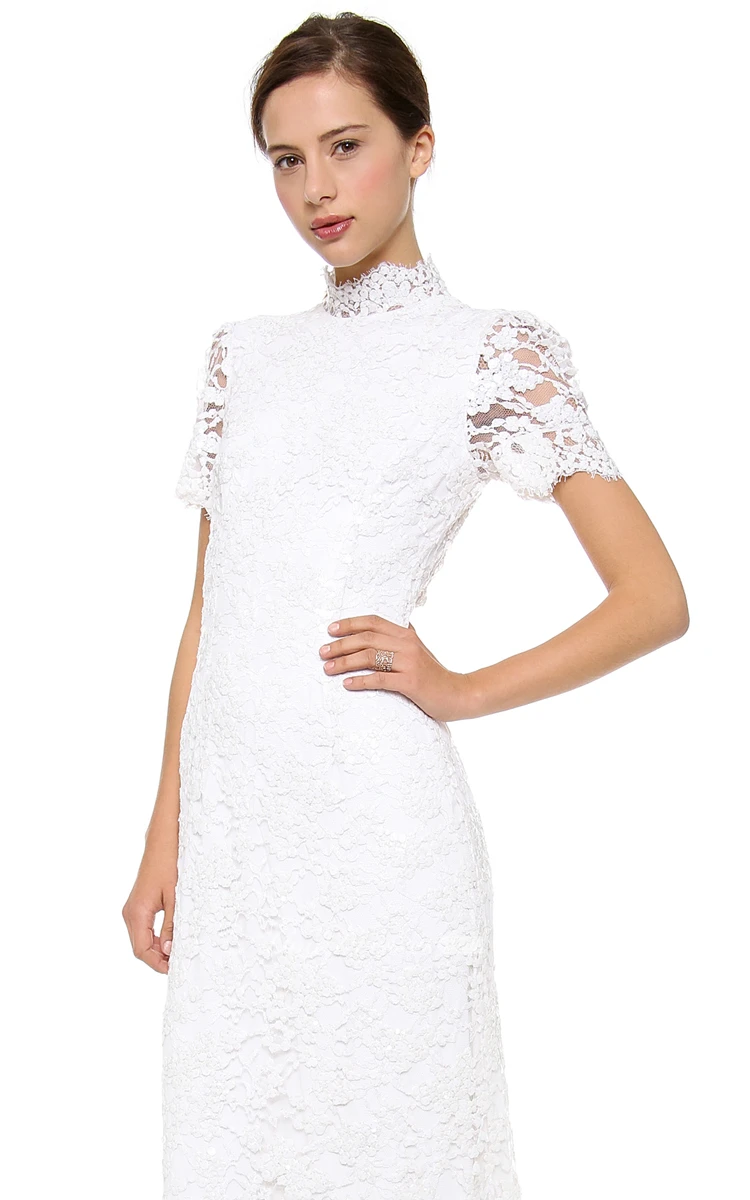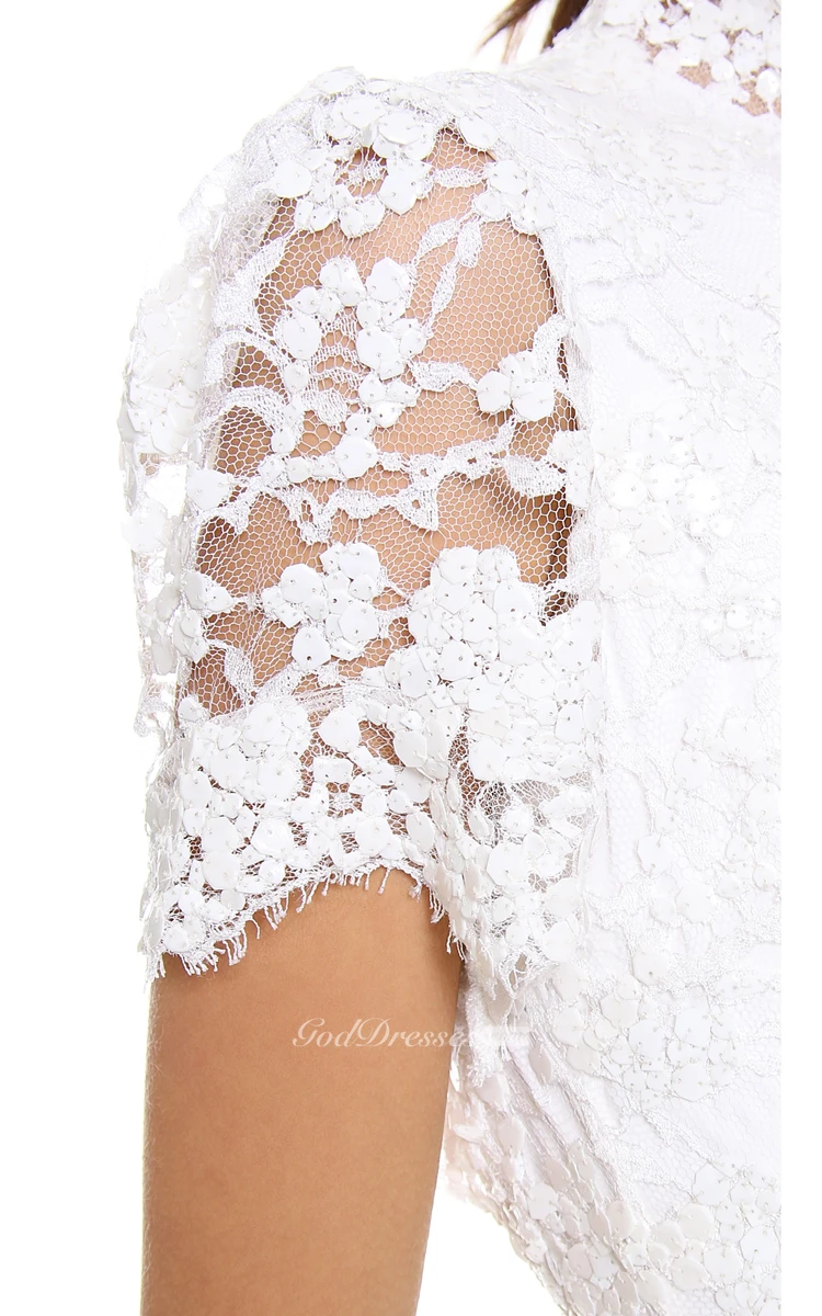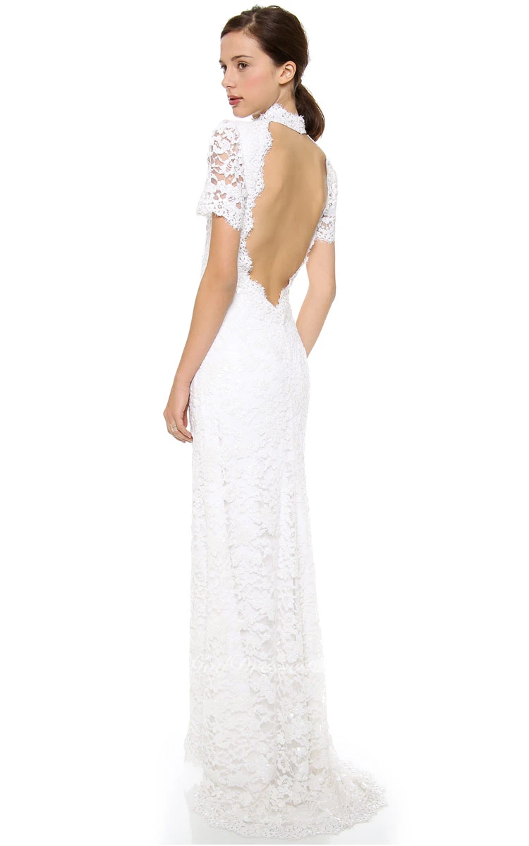 Long High Neckline Sheath Lace Dress With Keyhole Back Style