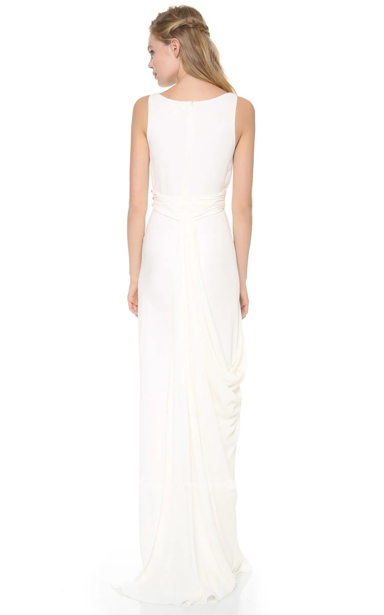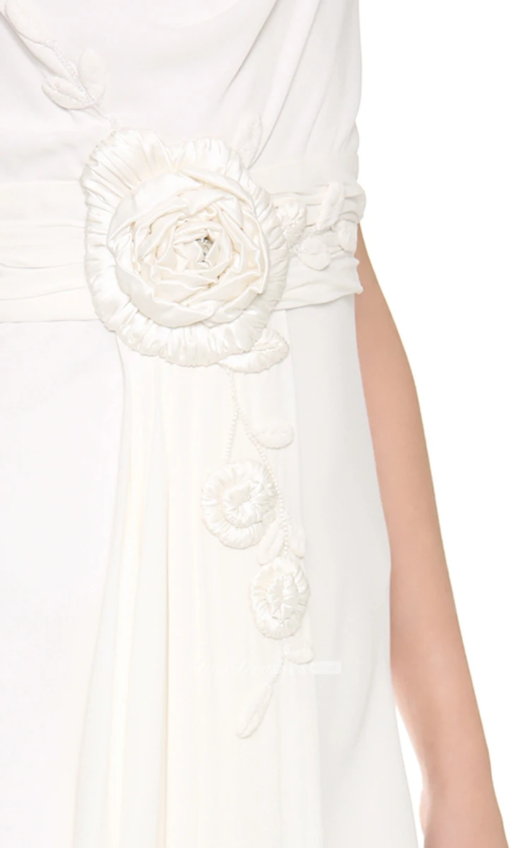 Long Low-V Neckline Sheath Chiffon Dress With 3D Flowers