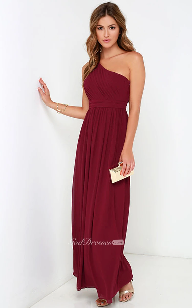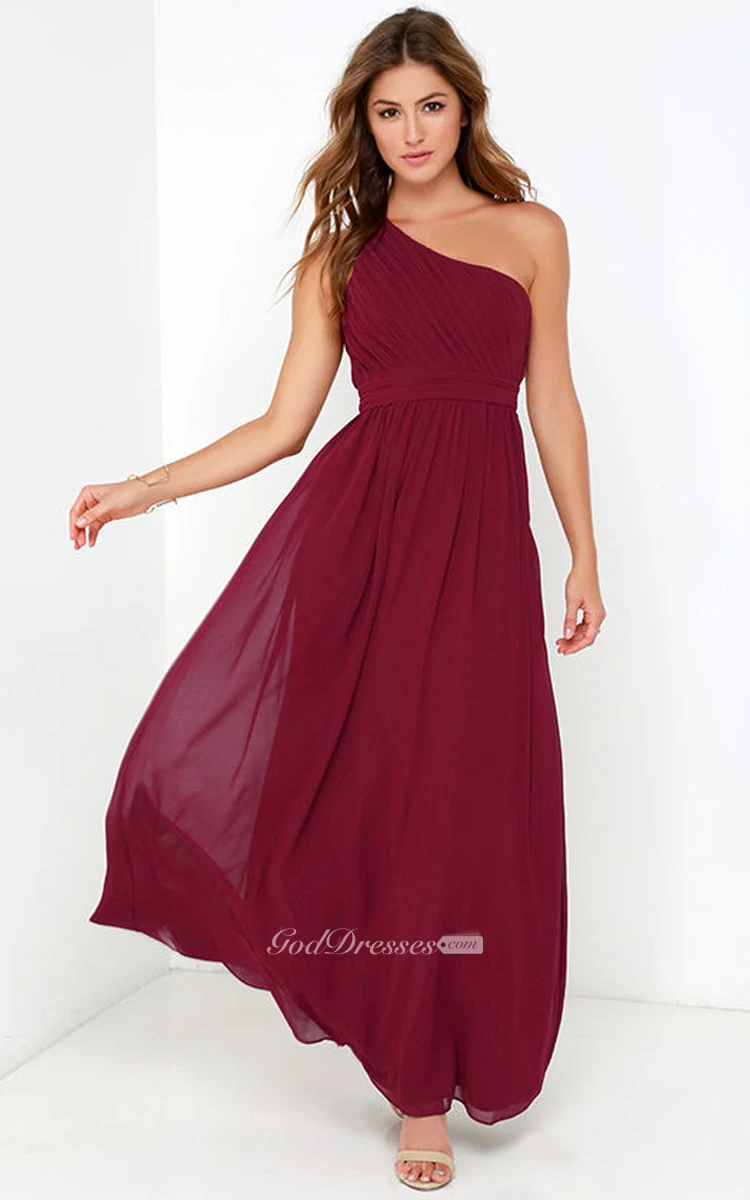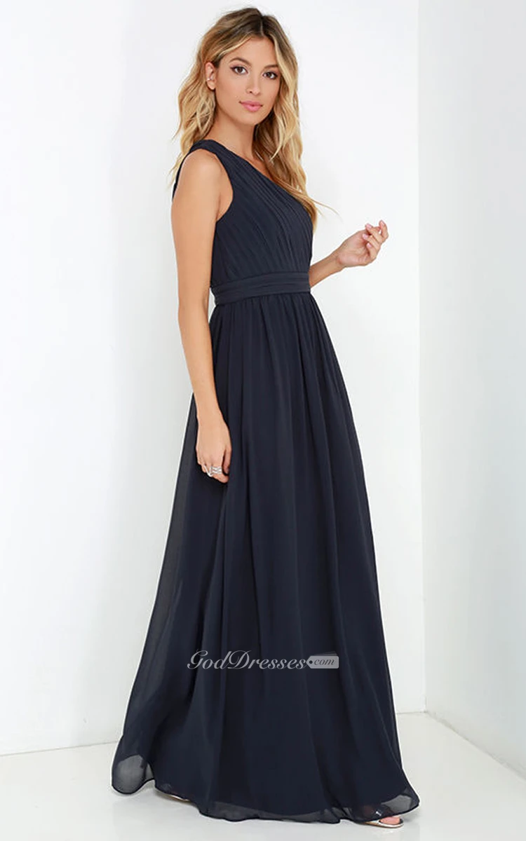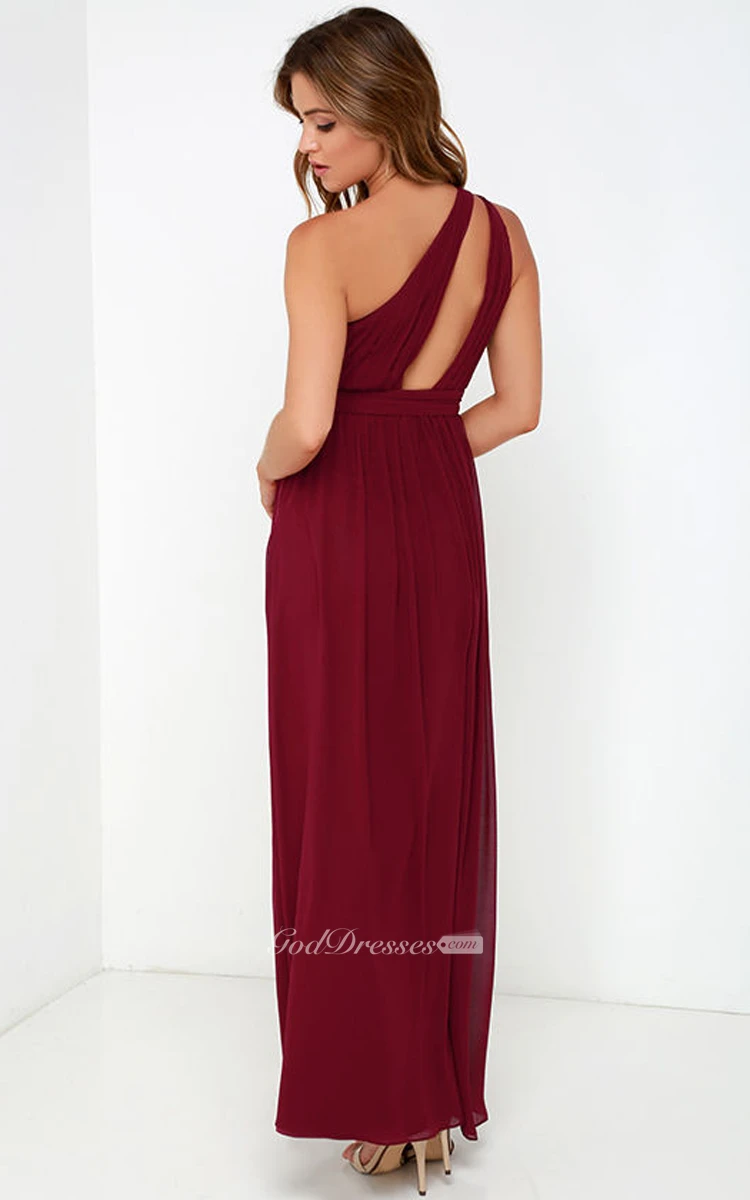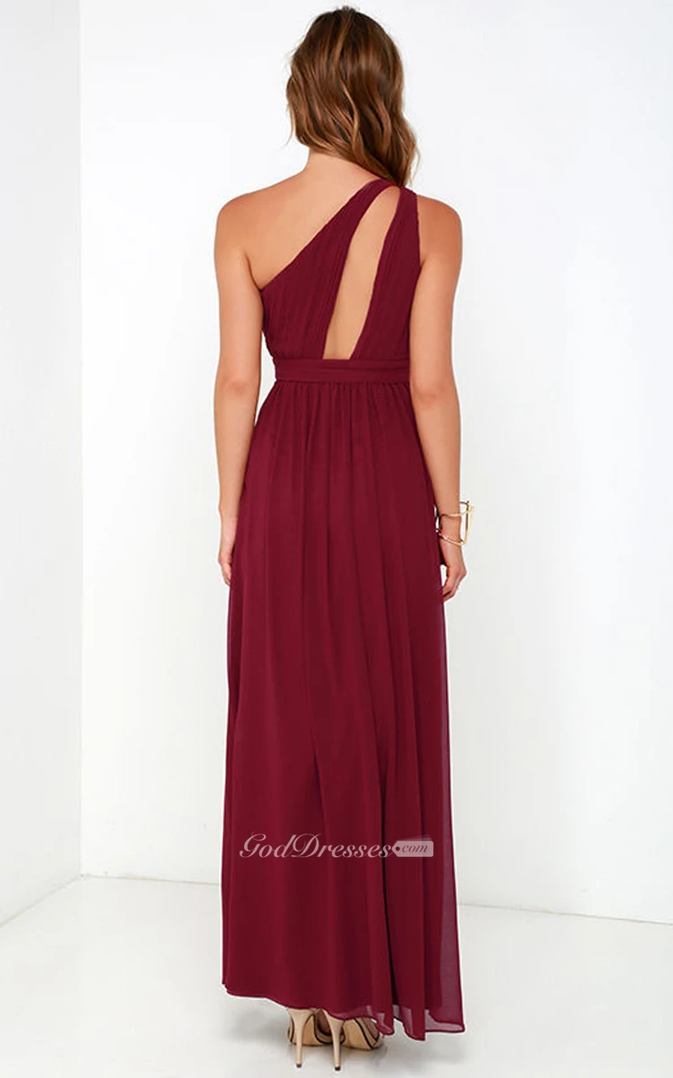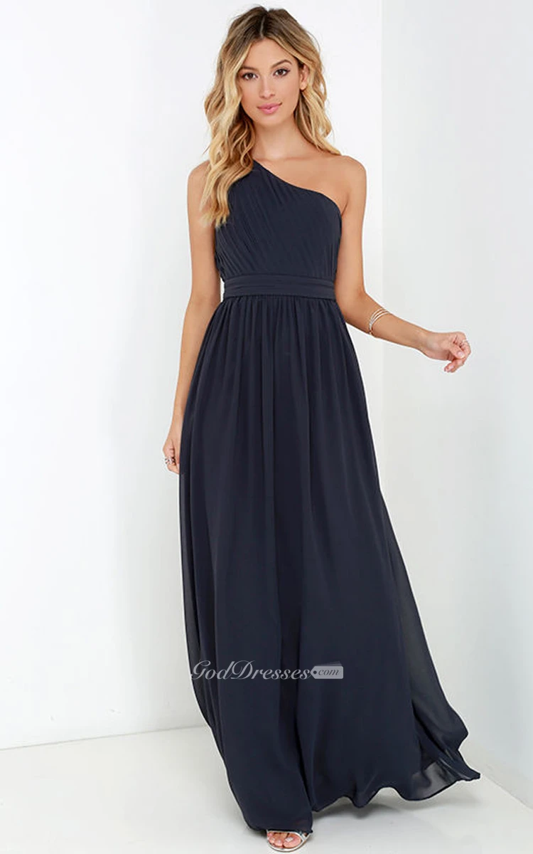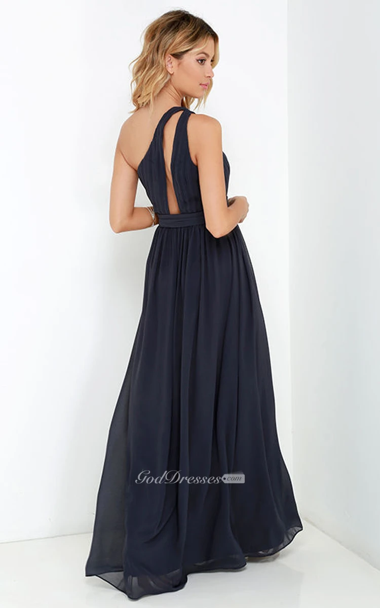 Long One-Shoulder Chiffon A-Line Unique Dress