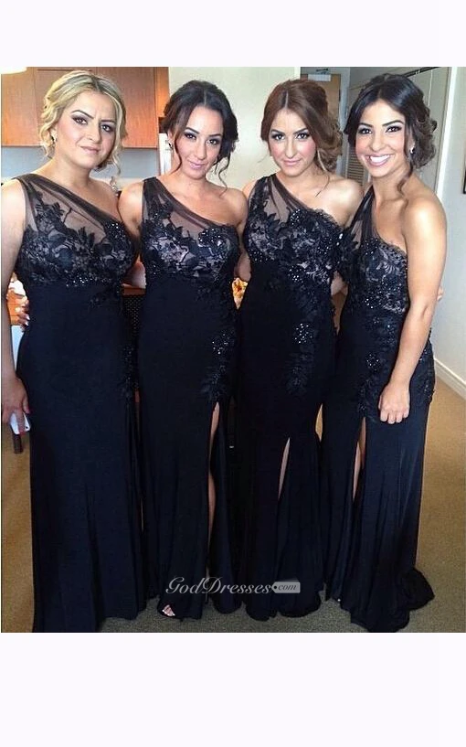 Long One-shoulder Keyhole Chiffon Lace Dress