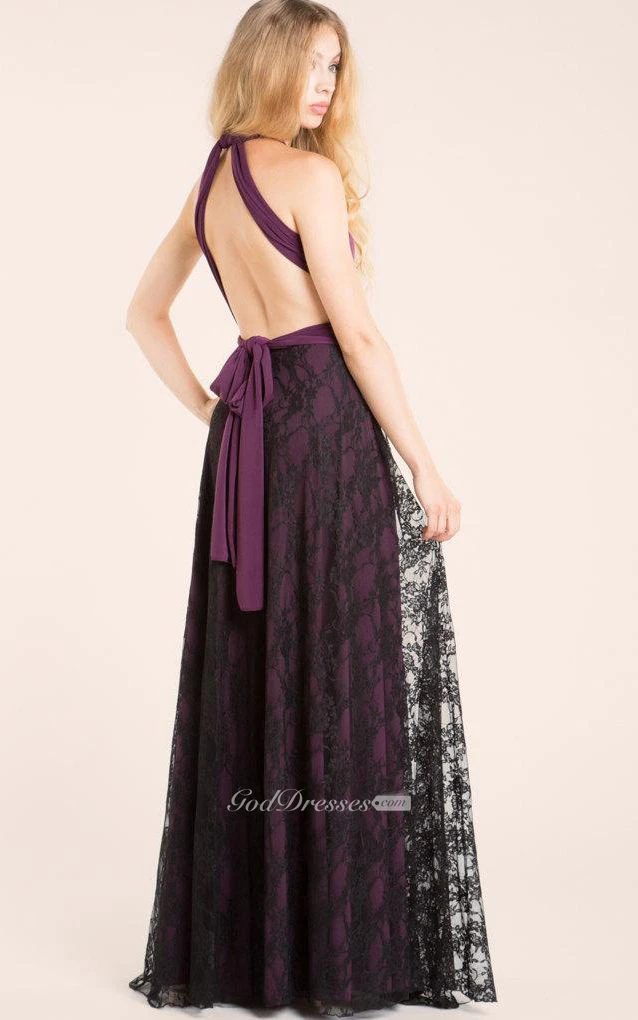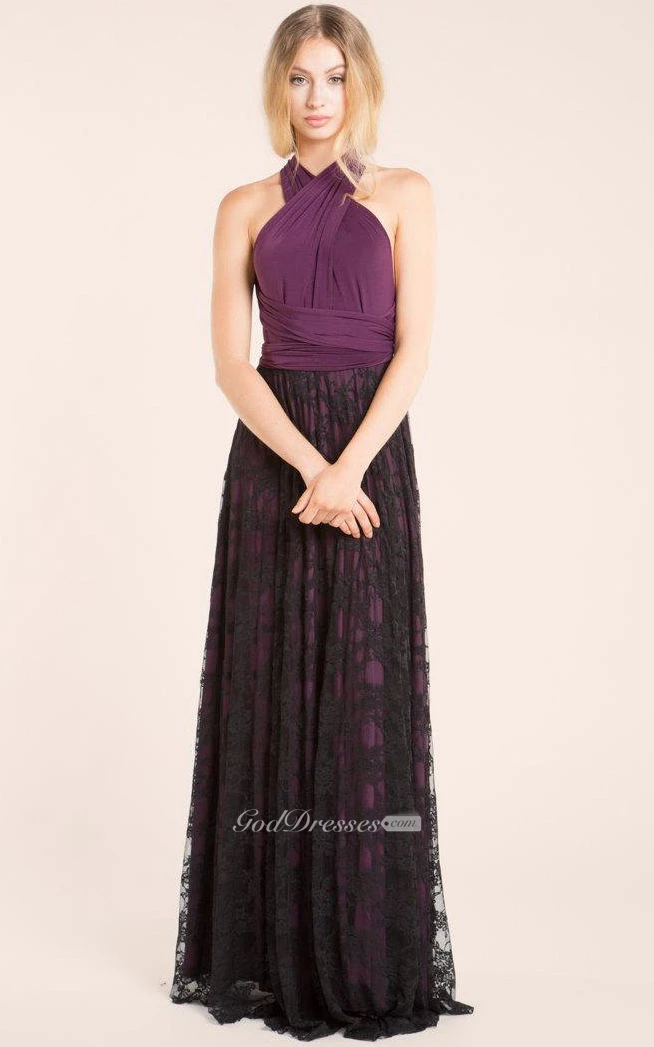 Long Purple Lace Aubergine Lace Long Purple Black Lace Aubergine Eggplant Lace Gown Black Lace Bridesmaid Dress