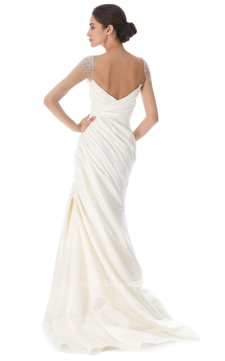 Long Queen Anne A-line Taffeta Dress With Low-V Back Style