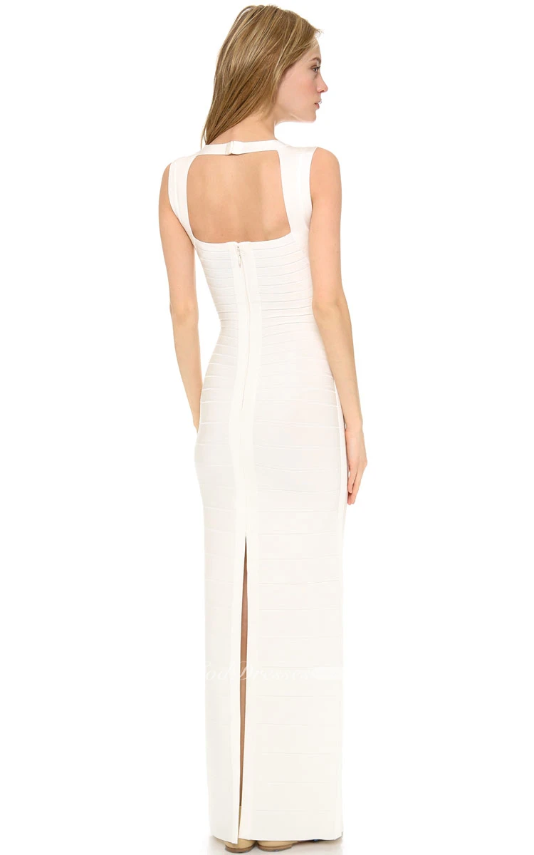 Long Queen Anne Sheath Chiffon Dress With Keyhole