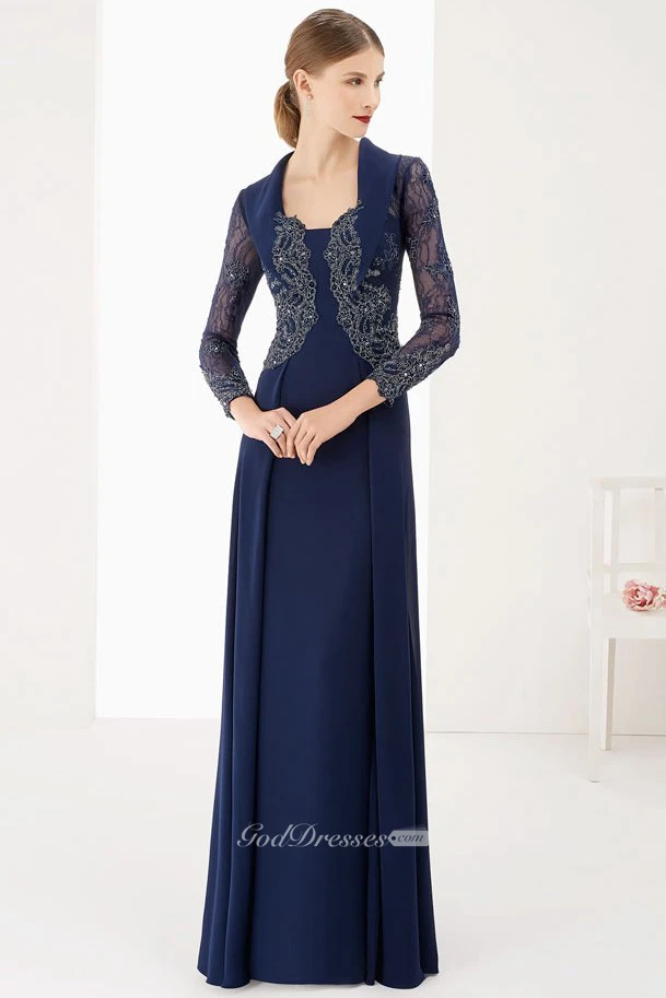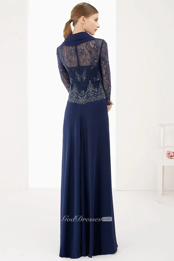 Long Sleeve A-Line Long Prom Dress With Lace Top And Collar