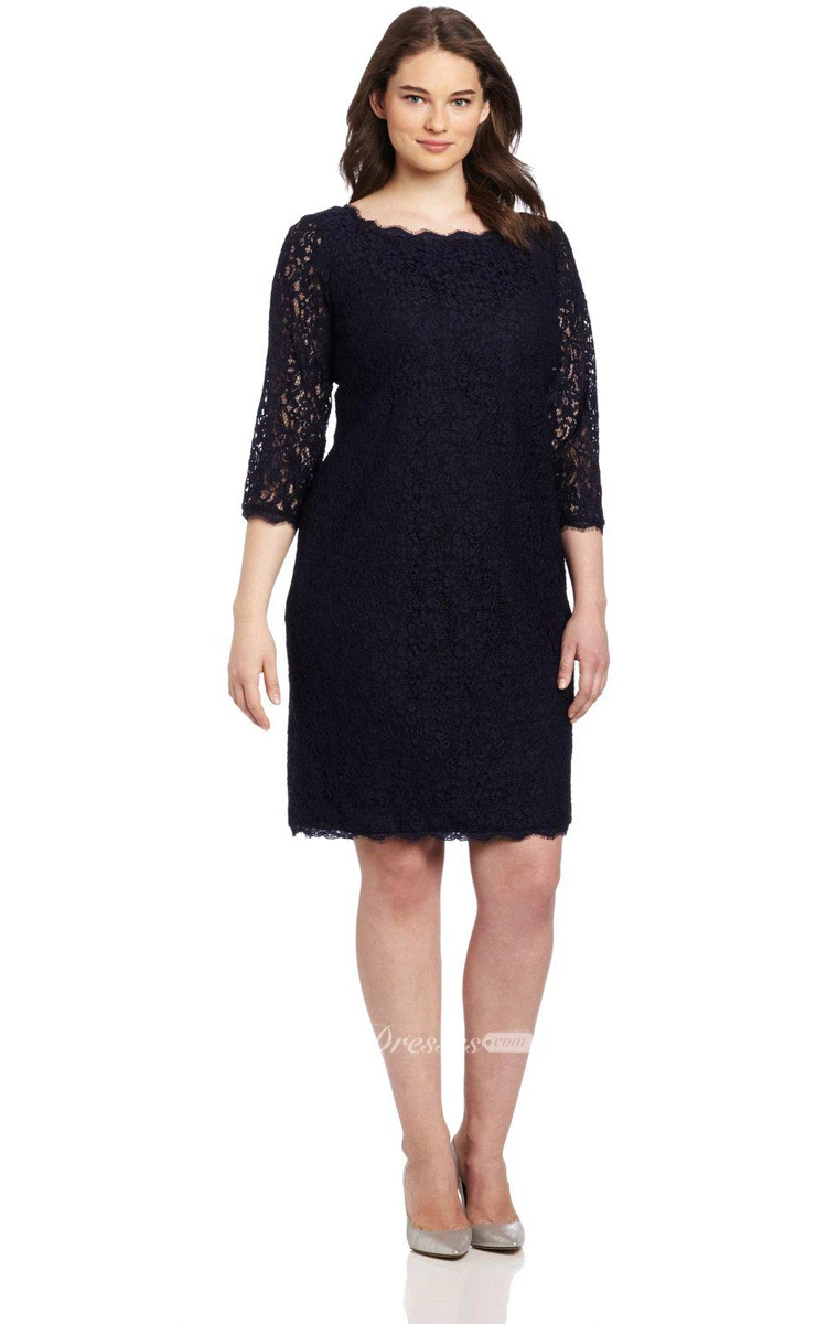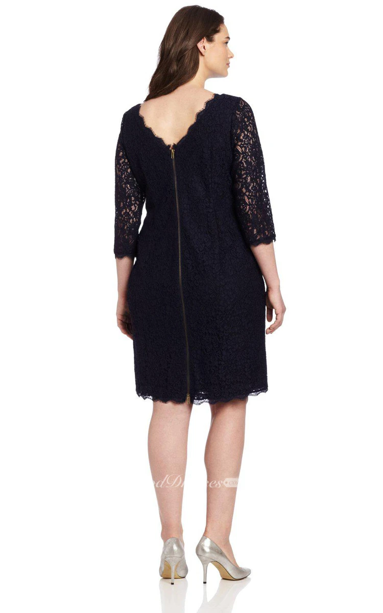 Long Sleeve Knee Length Lace Short Dress With Long Center Zipper