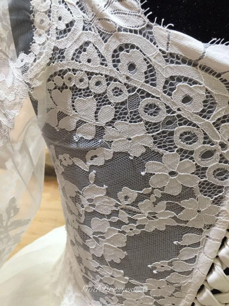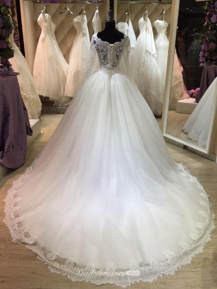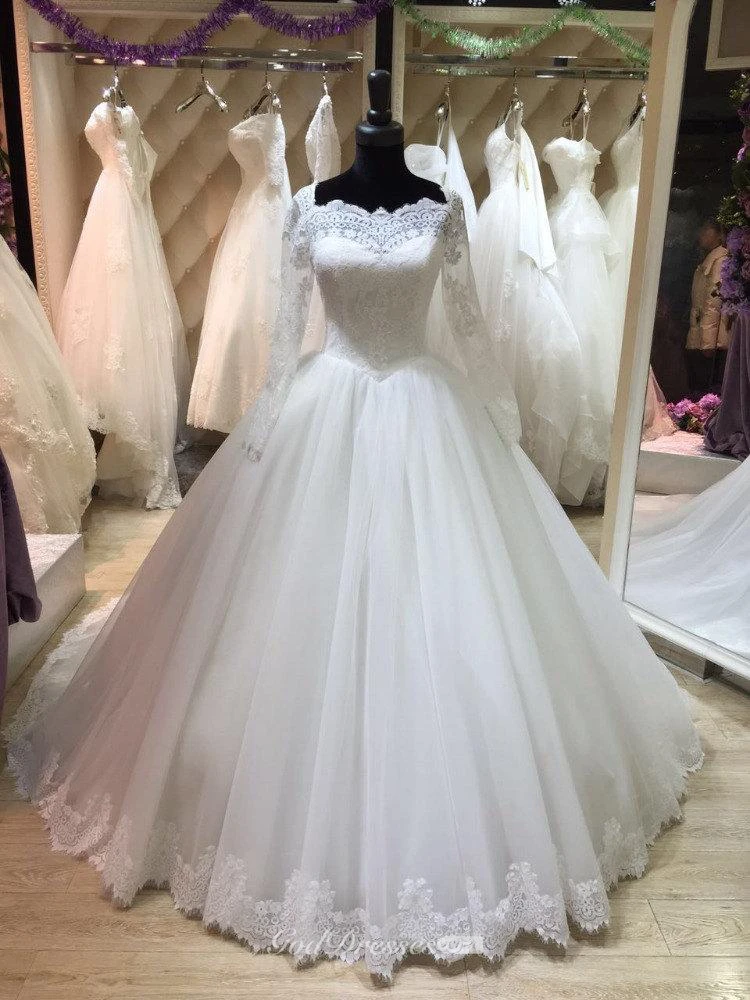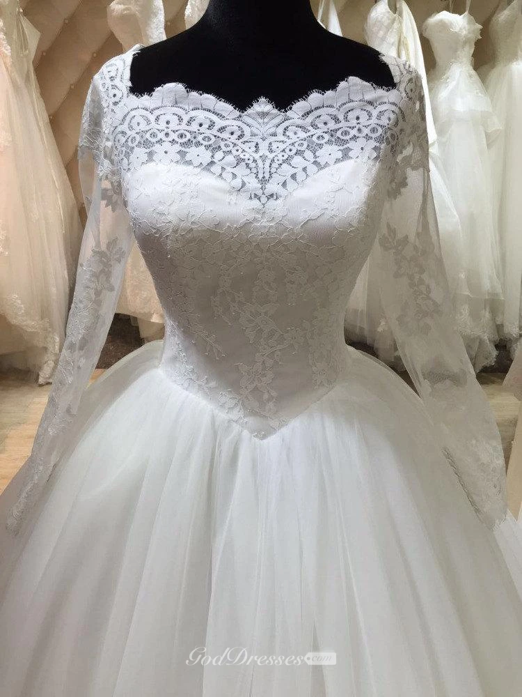 Long Sleeve Lace and Tulle Ball Gown With Illusion Back