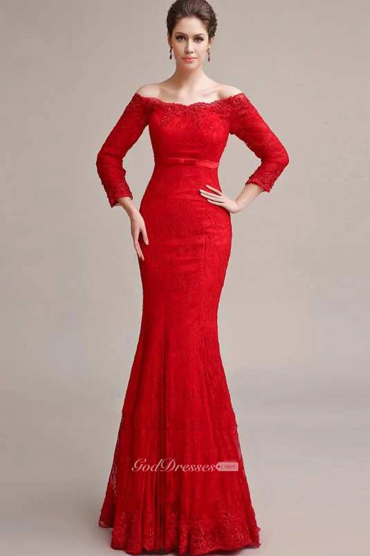 Long Sleeve Off The Shoulder Mermaid Long Lace Dress