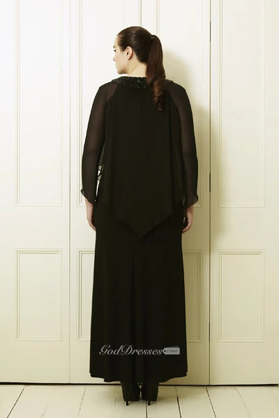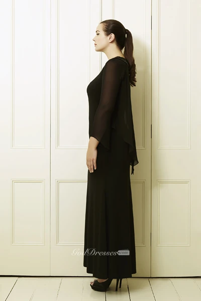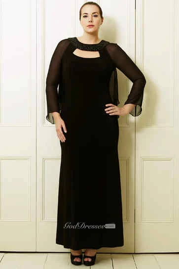 Long-Sleeve Scoop-Neck Ankle-Length Chiffon Plus Size Prom Dress