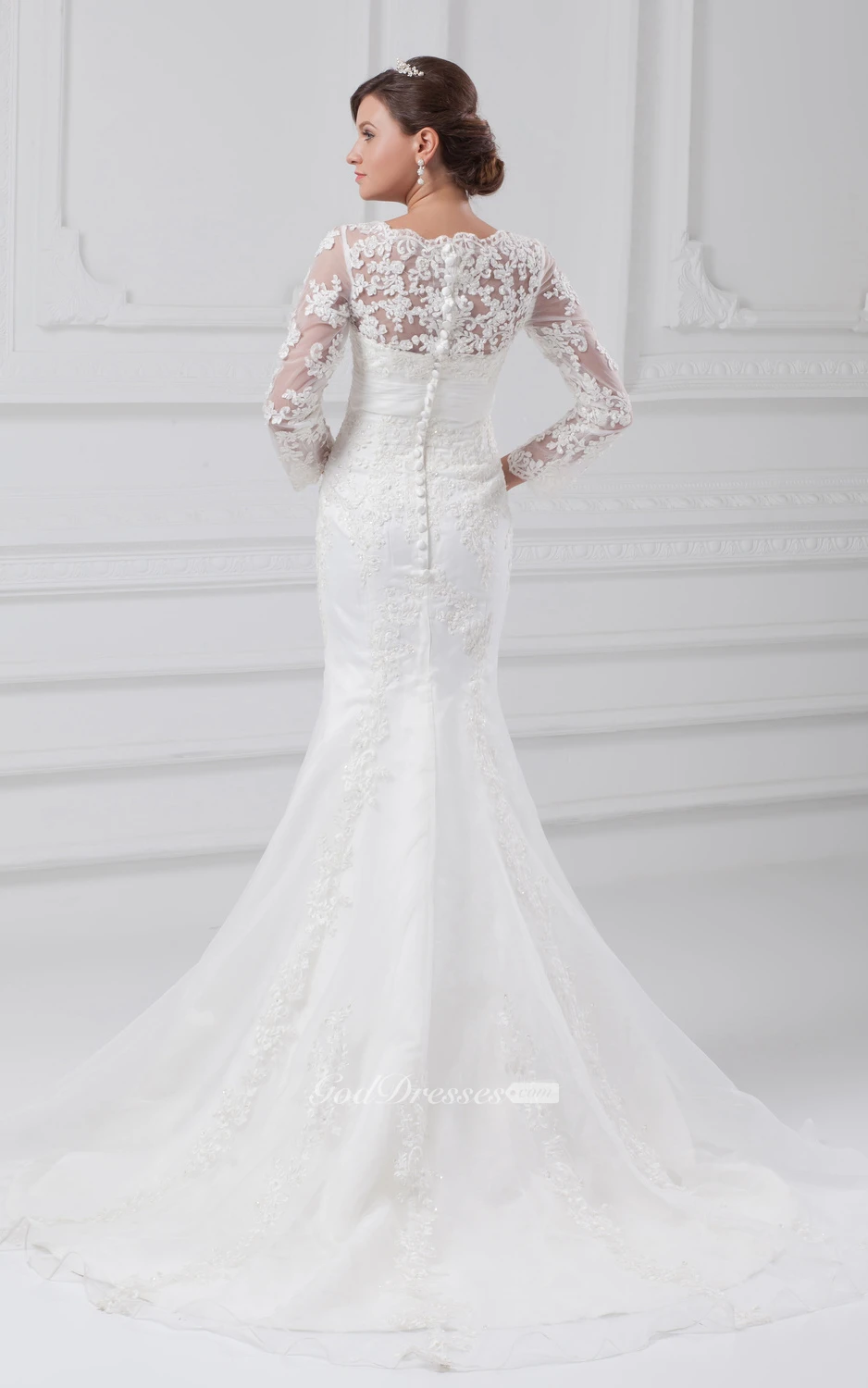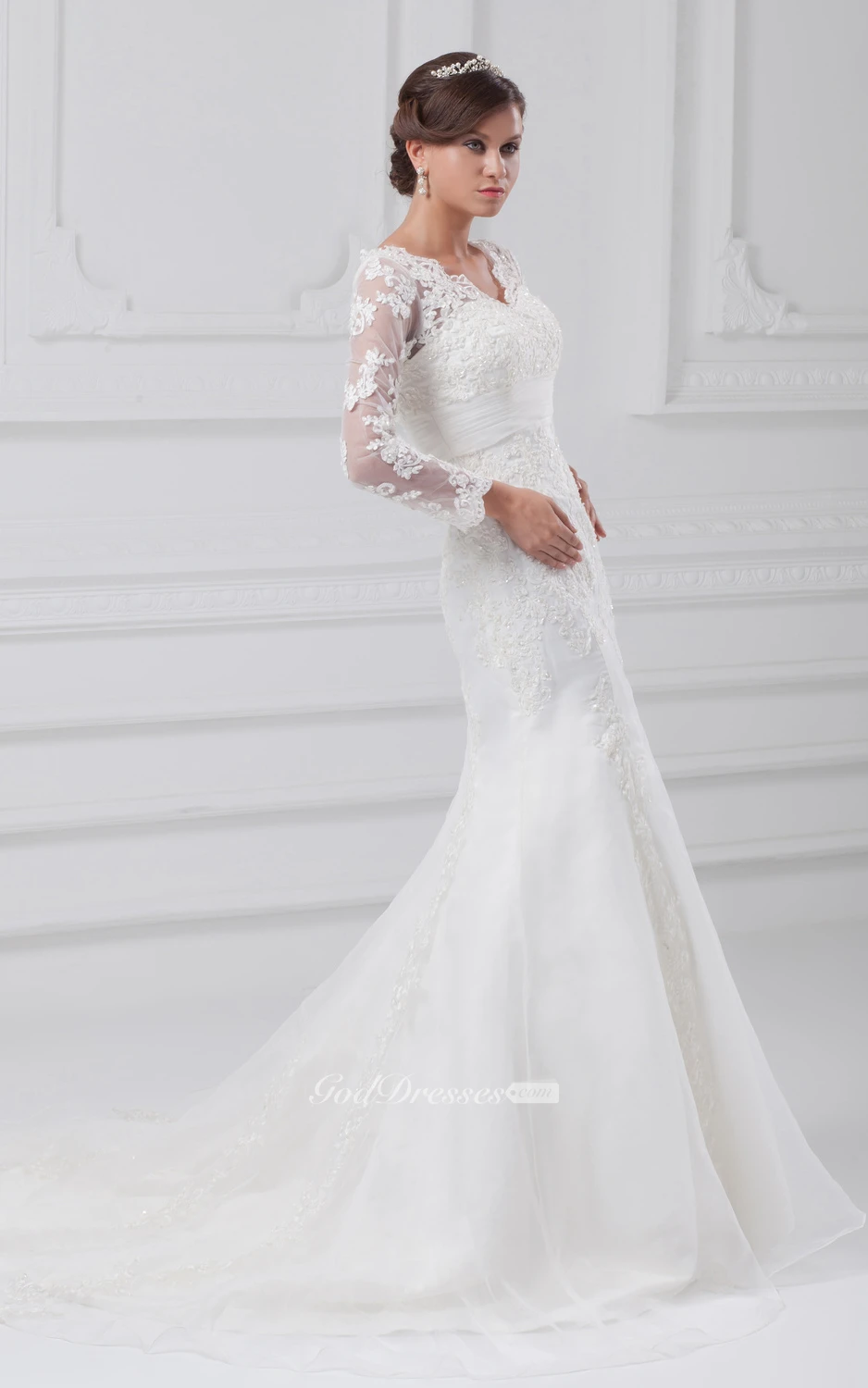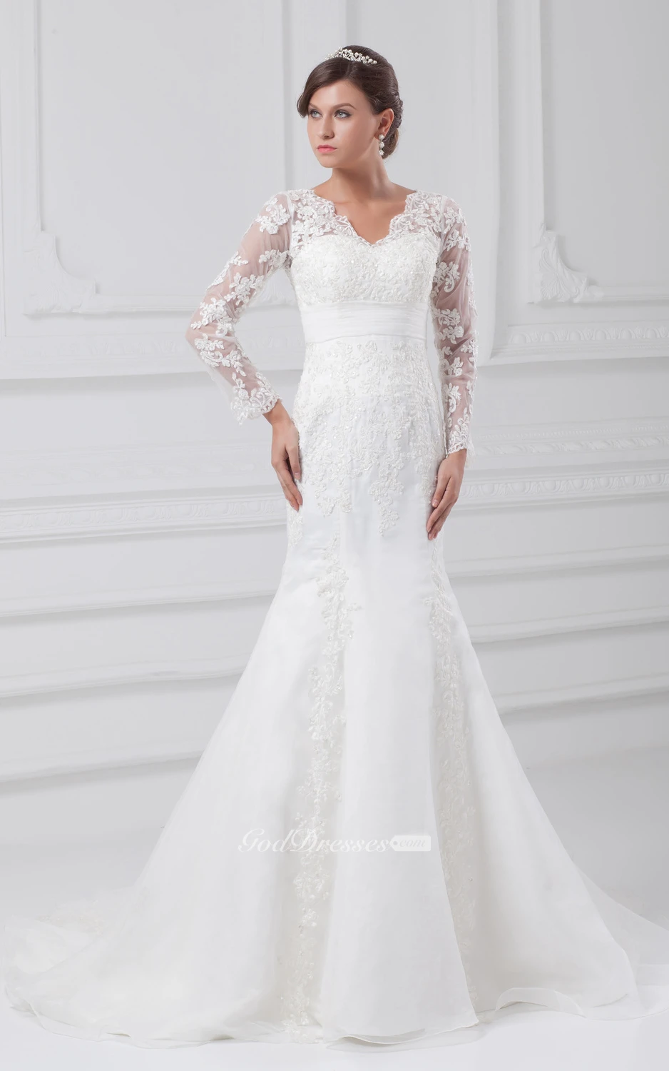 Long-Sleeve V-Neck Mermaid Dress With Lace Appliques