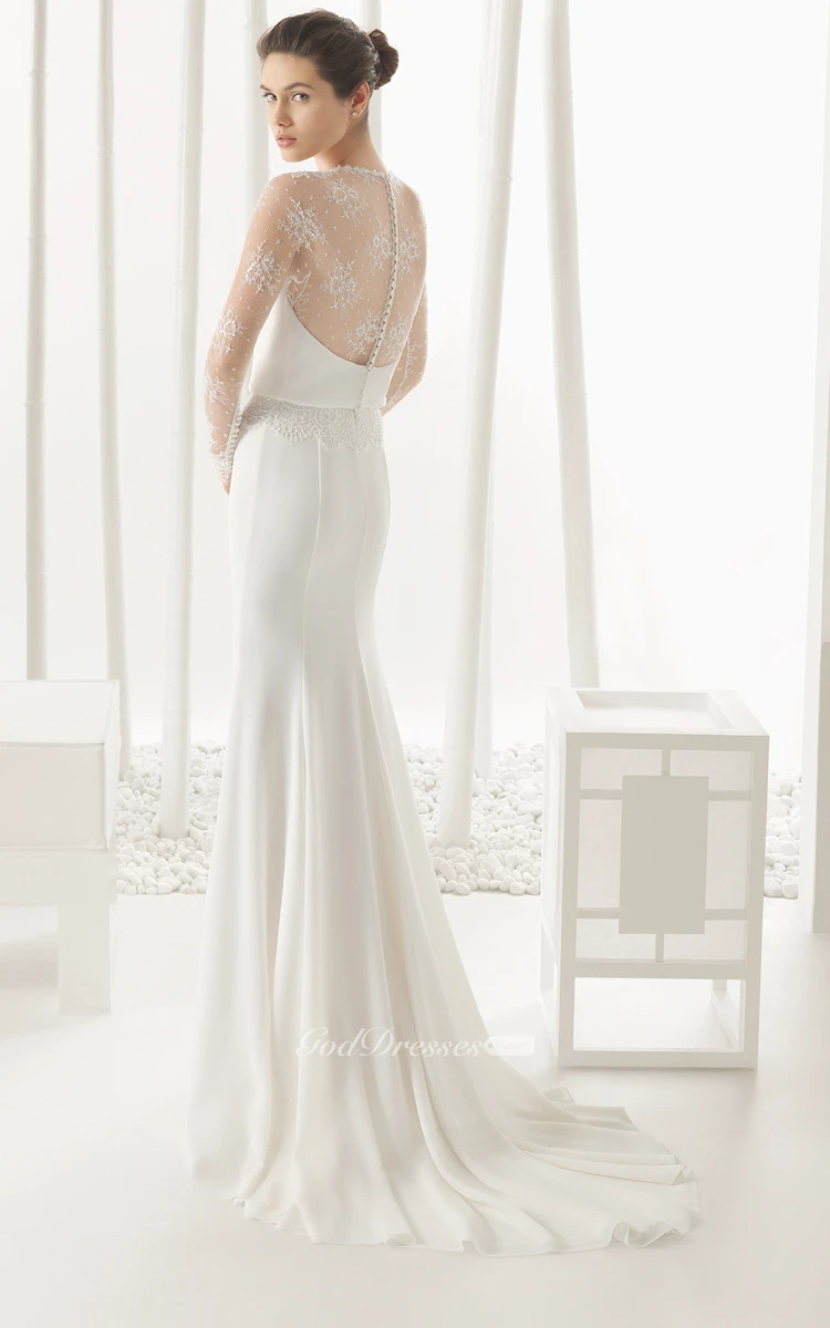 Long-Sleeved Jewel-Neck Style Dress With Illusion Back
