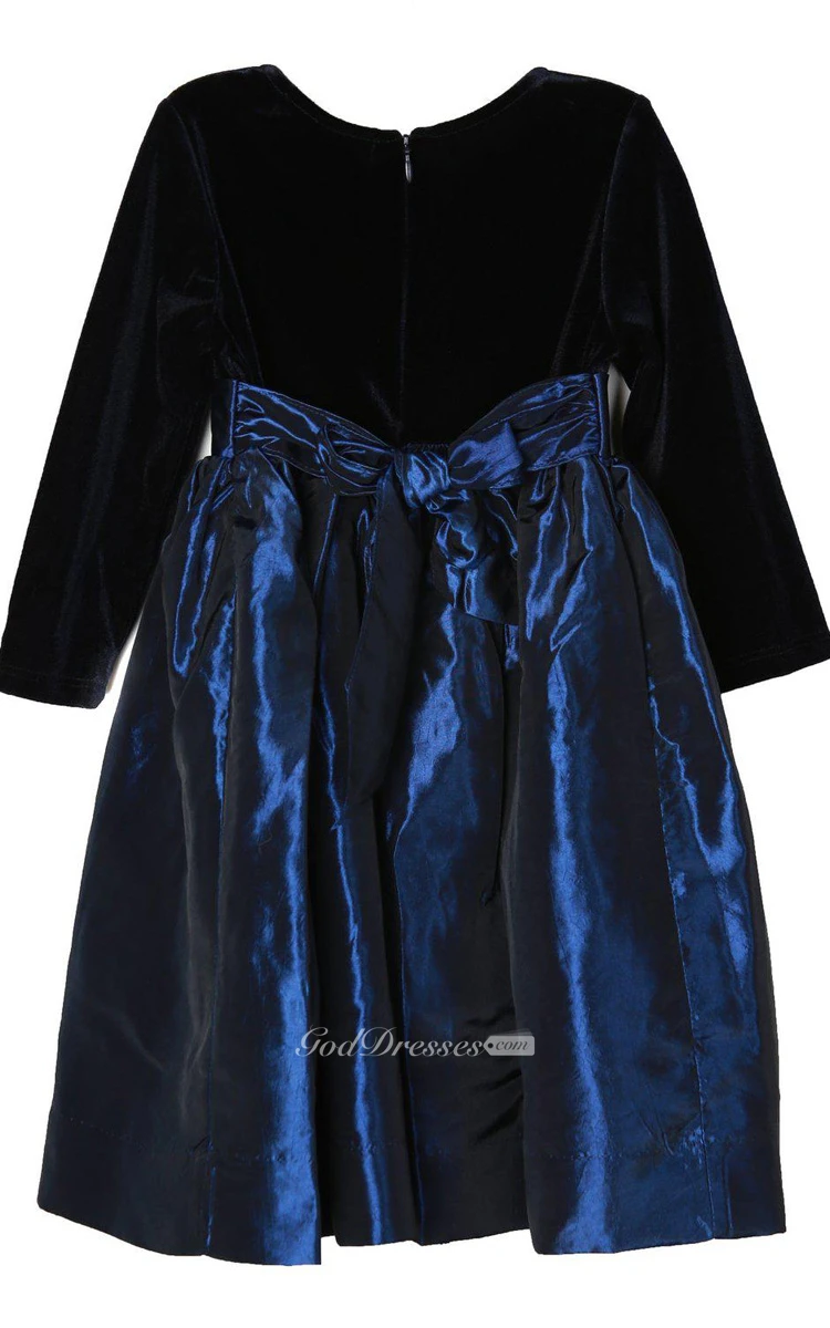 Long-sleeved Scoop-neck A-line Dress With Flowers and Bow