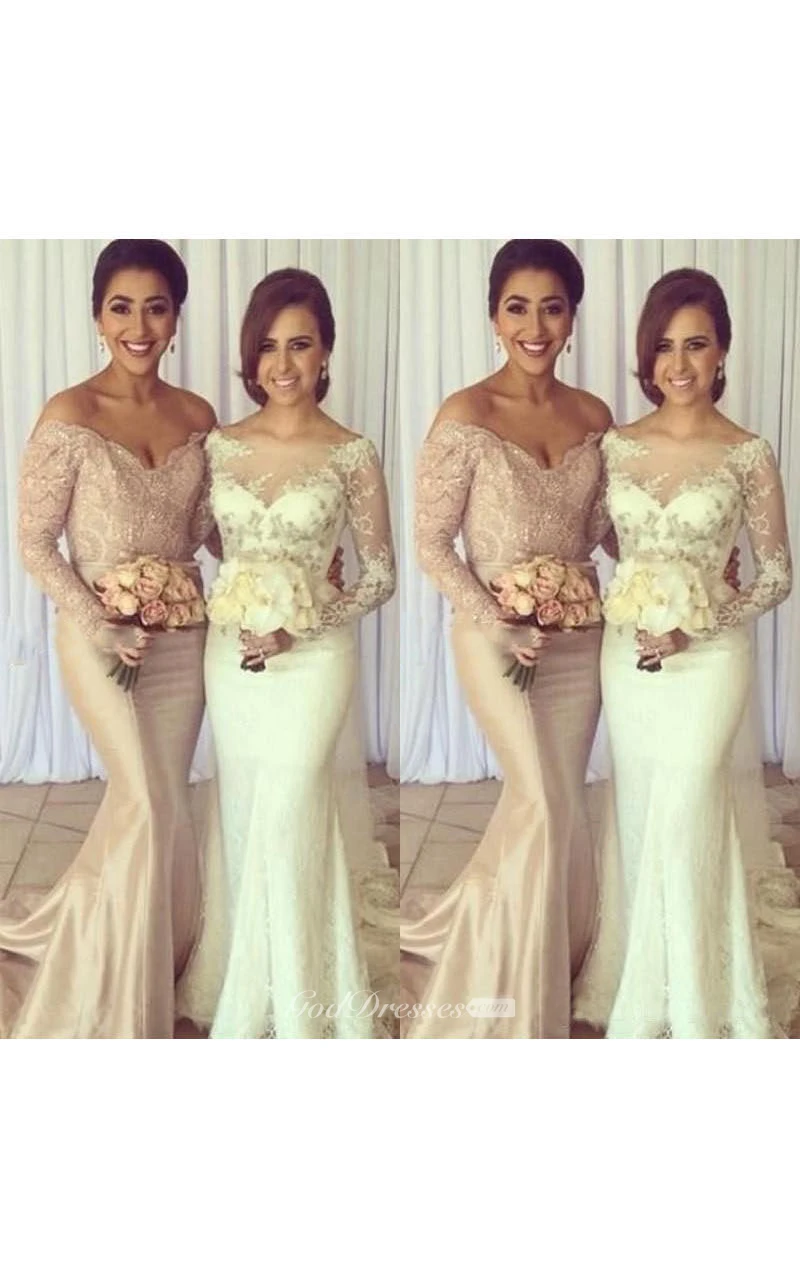 Long-sleeved V-neck Long Chiffon Dress with Lace Appliques