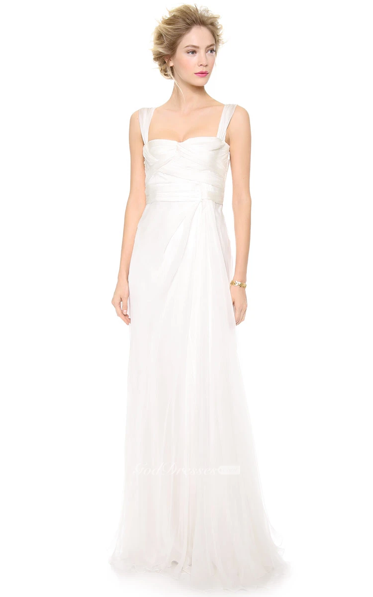Long Square Empire Taffeta Dress With Low-V Back Style