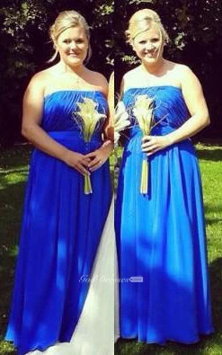 Long Strapless A-line Floor-length Ruched Chiffon Dress