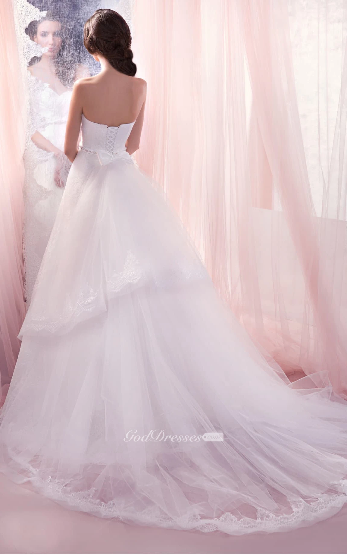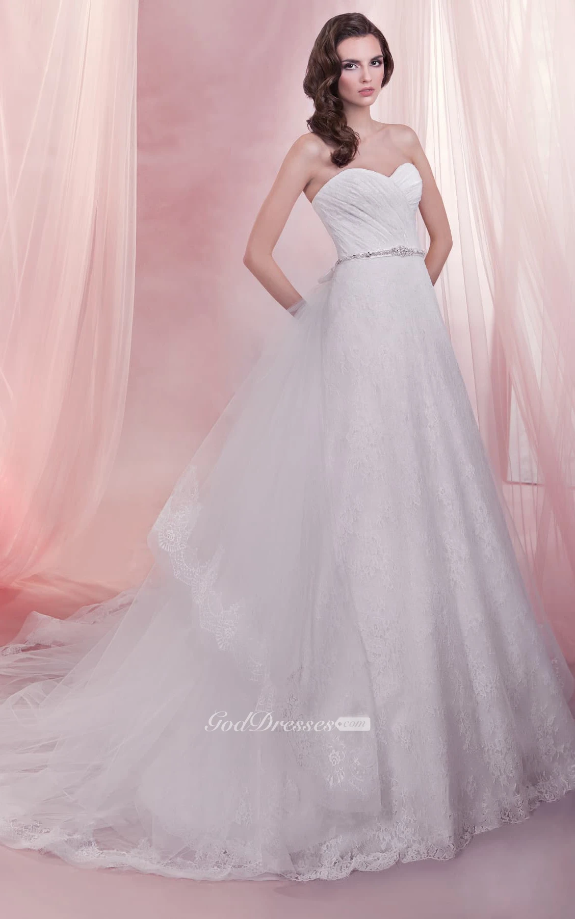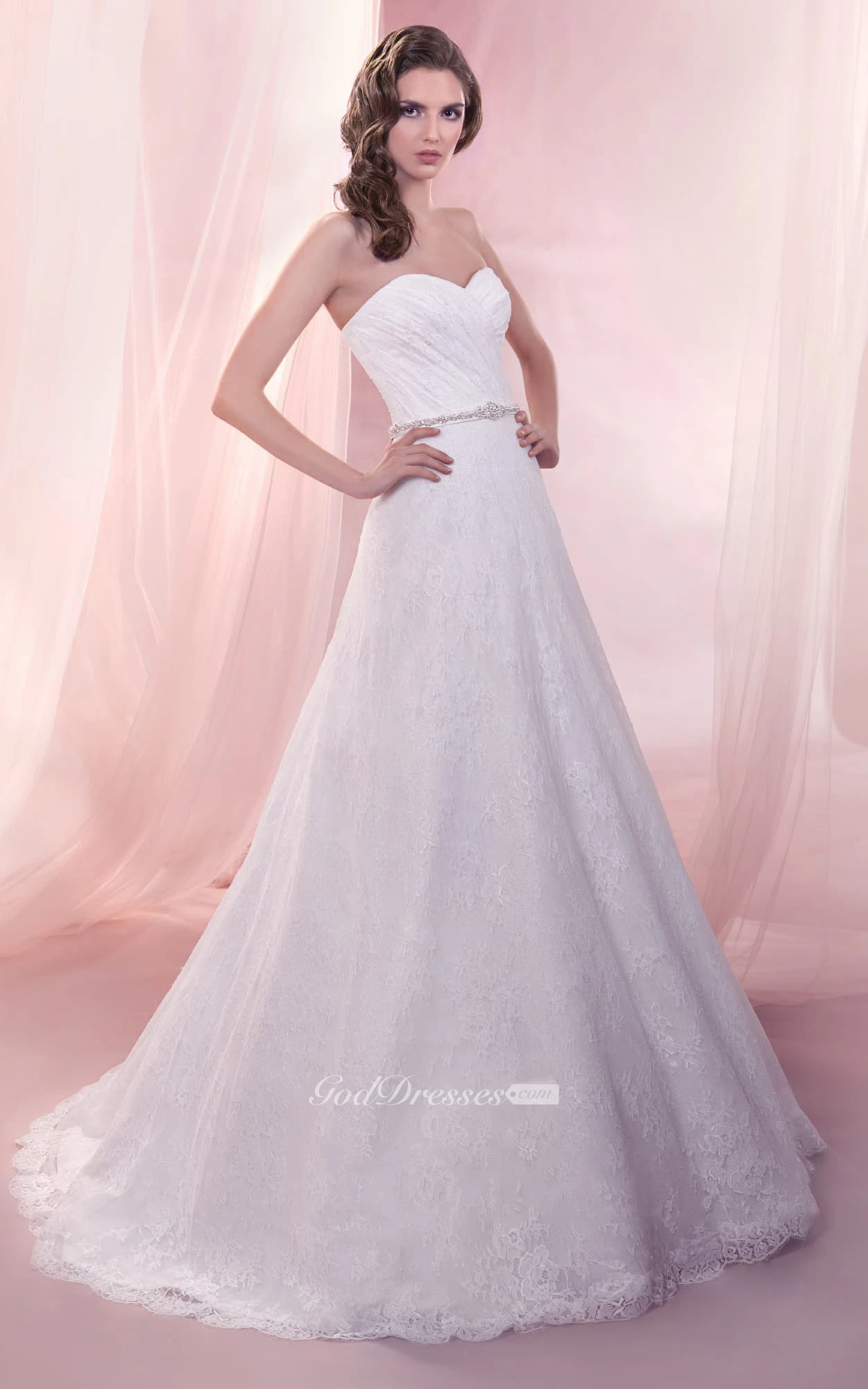 Long Sweetheart A-line Lace Wedding Dress With Detachable Train