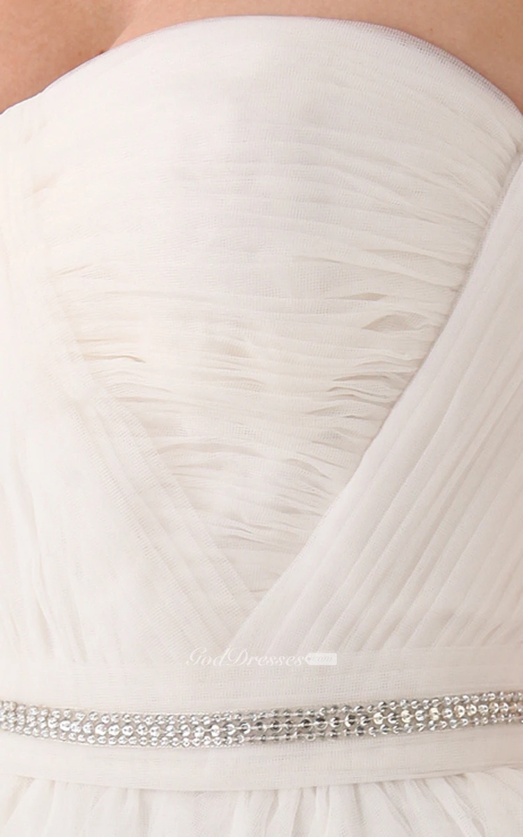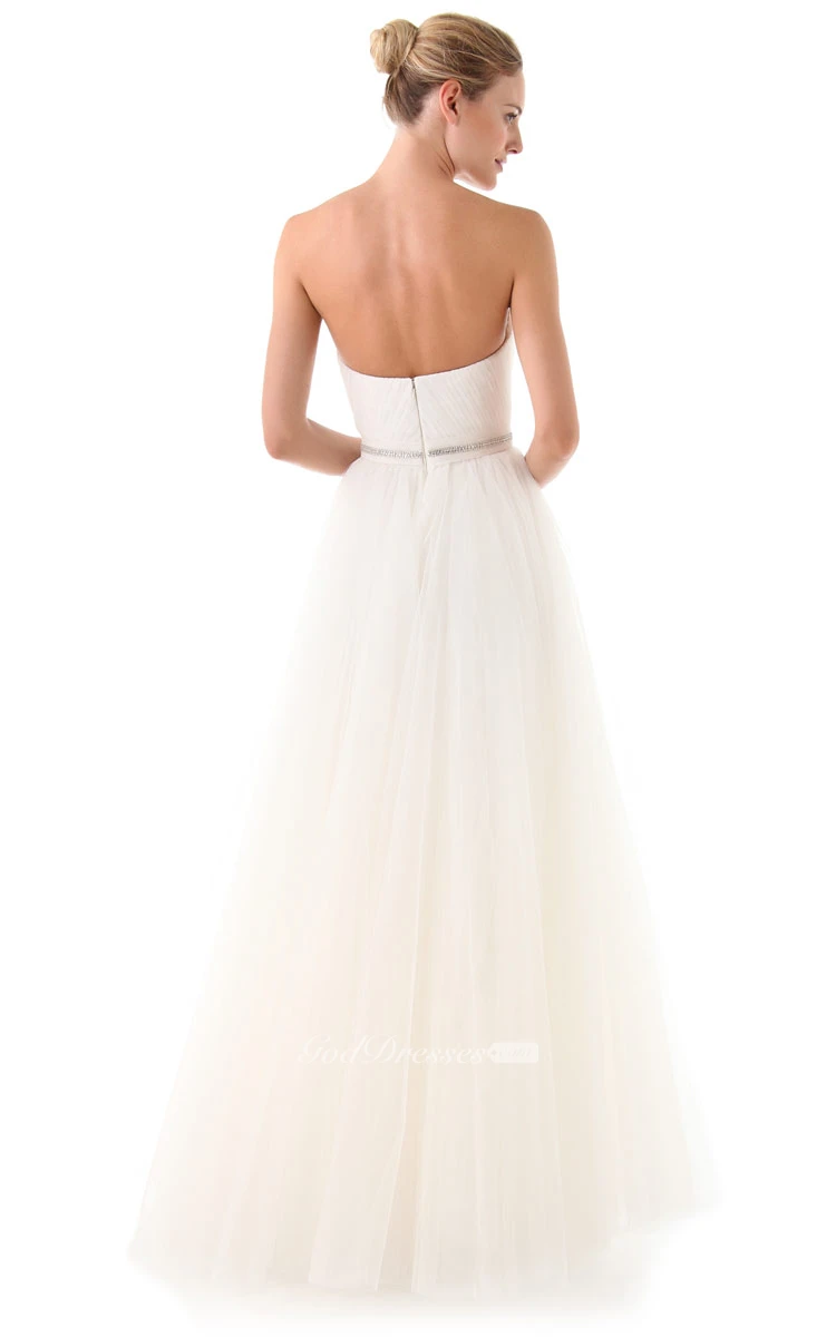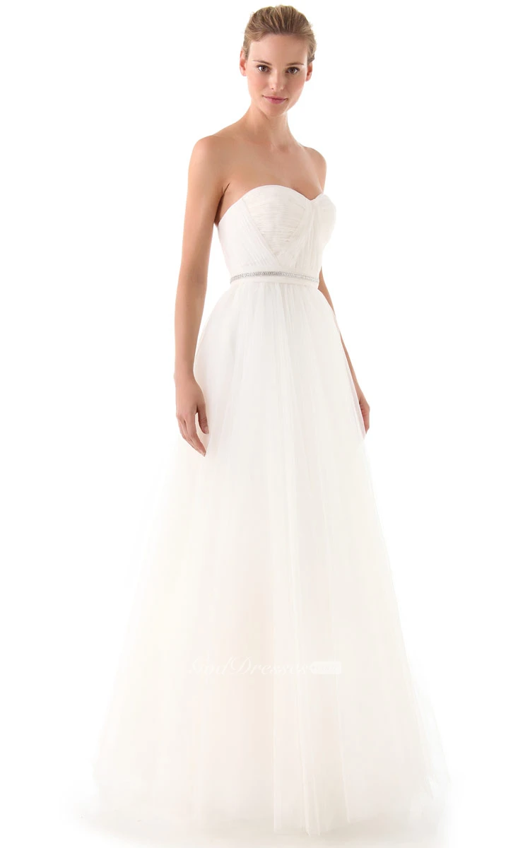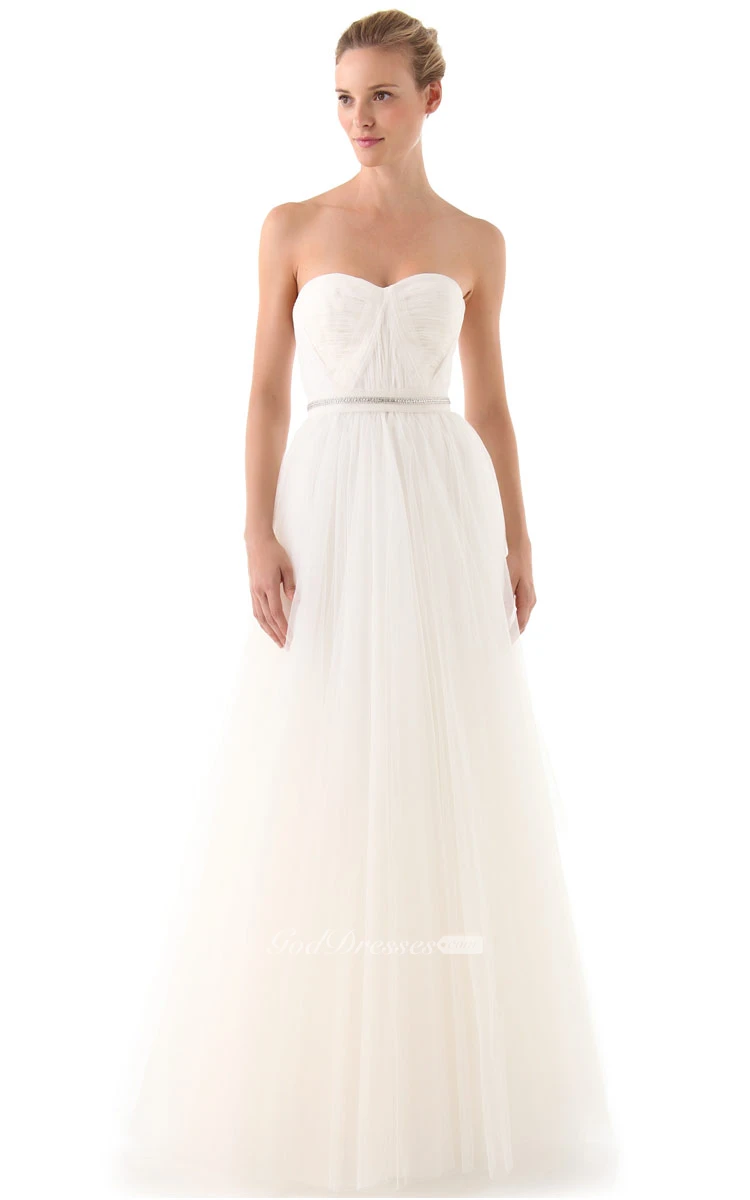 Long Sweetheart A-line Organza Dress With Beaded Belt
