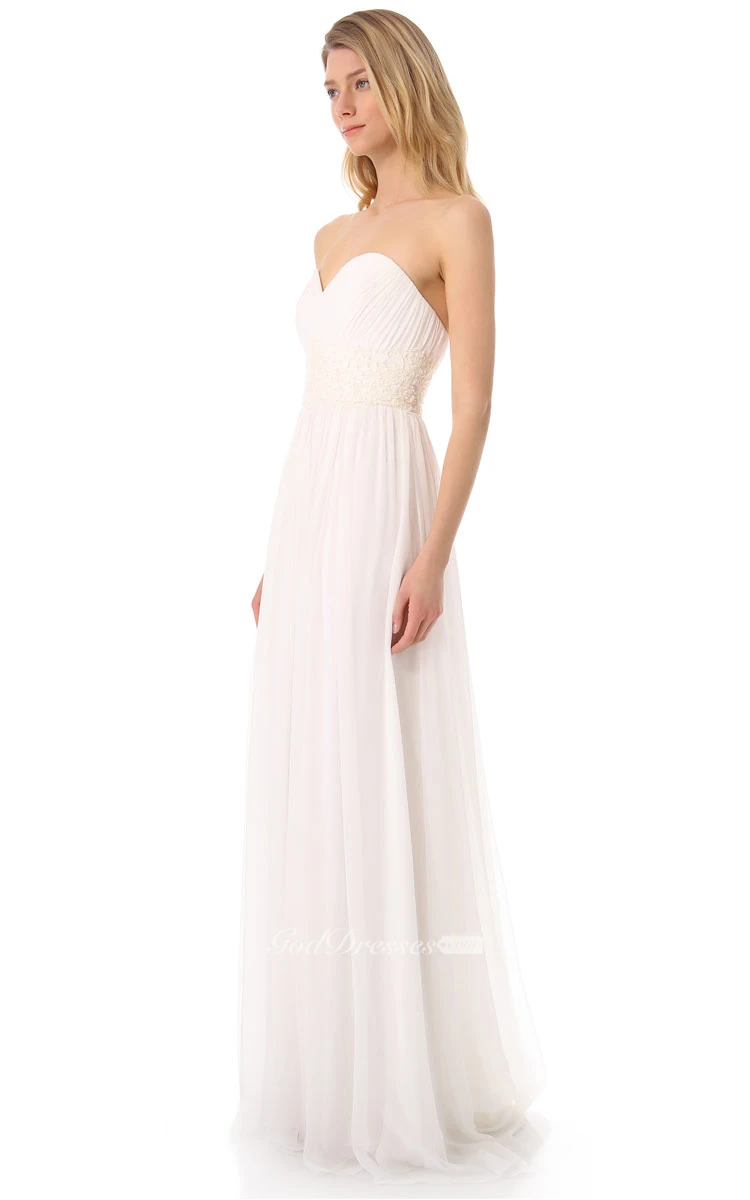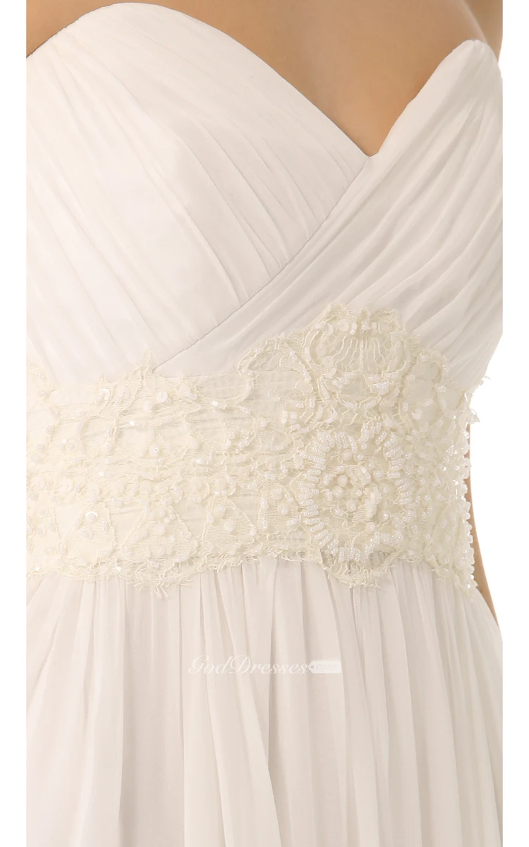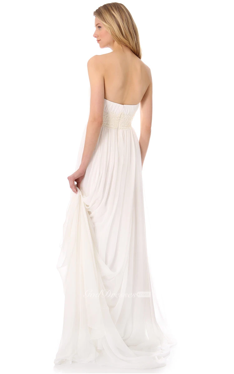 Long Sweetheart Empire Chiffon Dress With Chapel Train