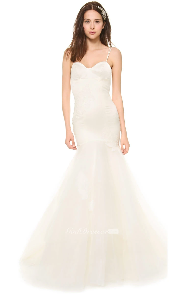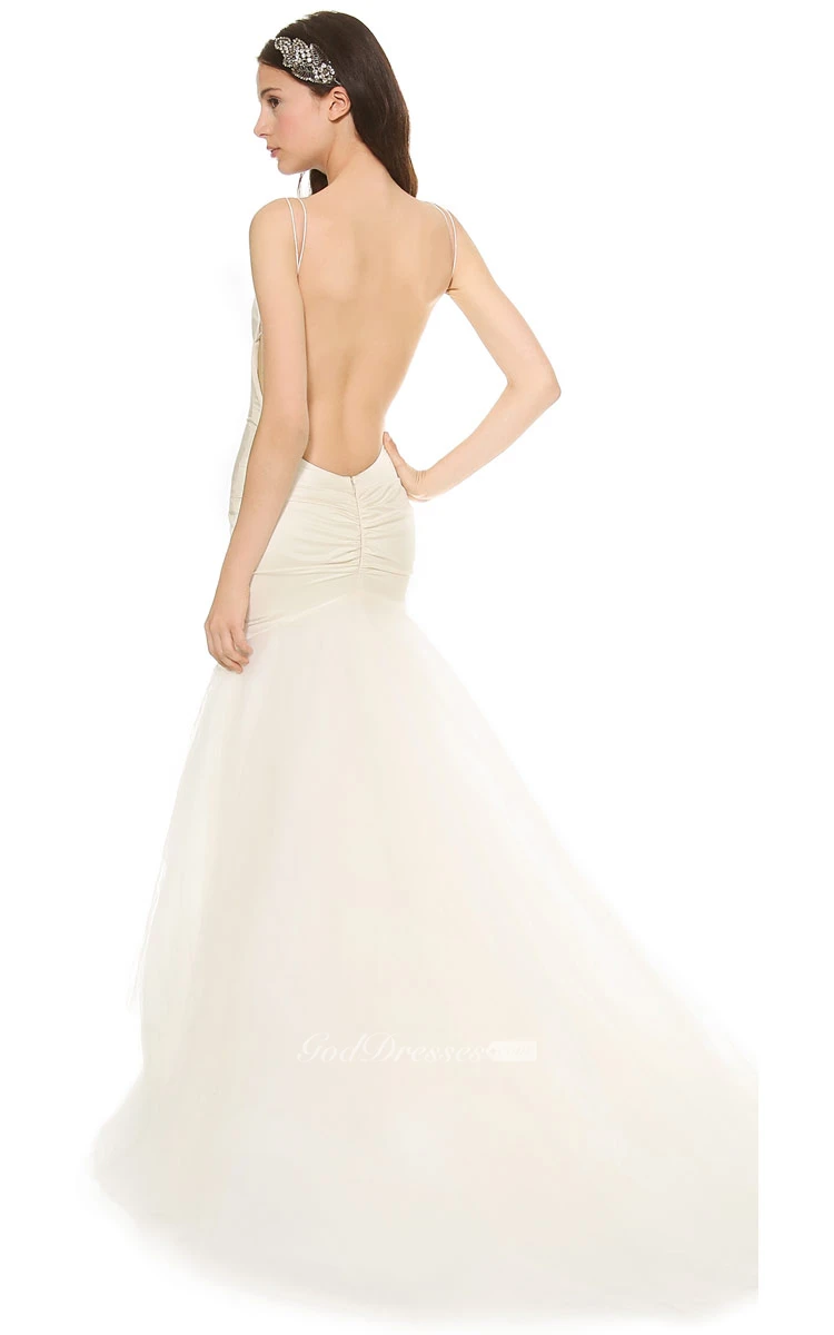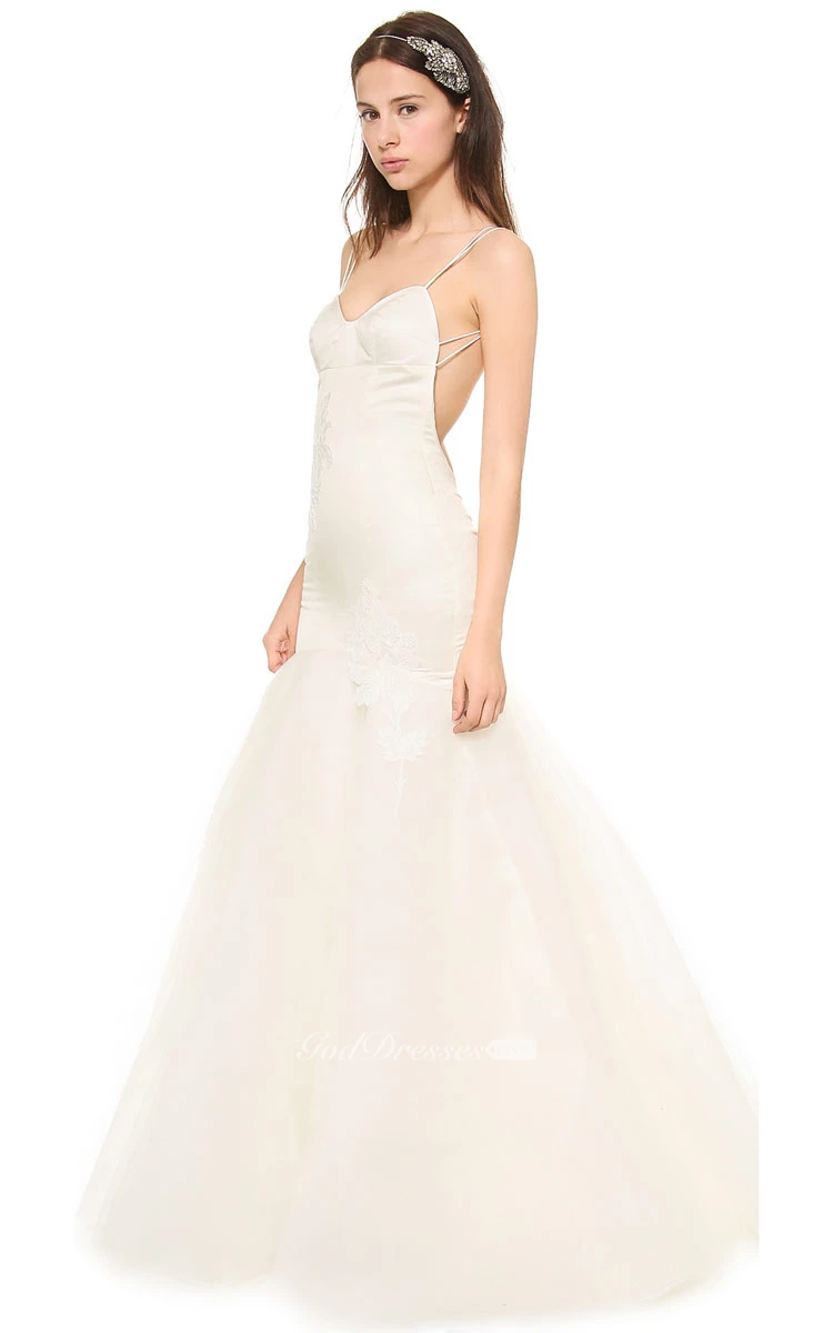 Long Trumpet Organza Dress With Backless Style and Spaghette Straps