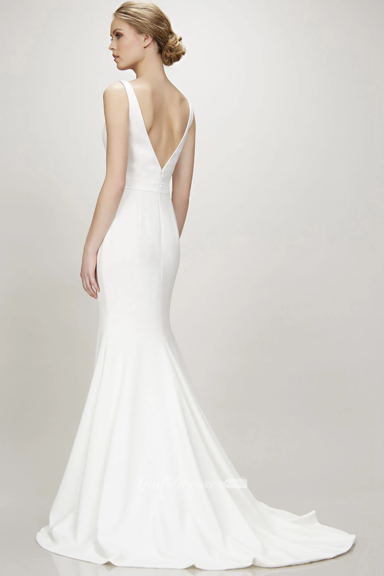 Long V-Neck Wedding Dress With Sweep Train And V Back