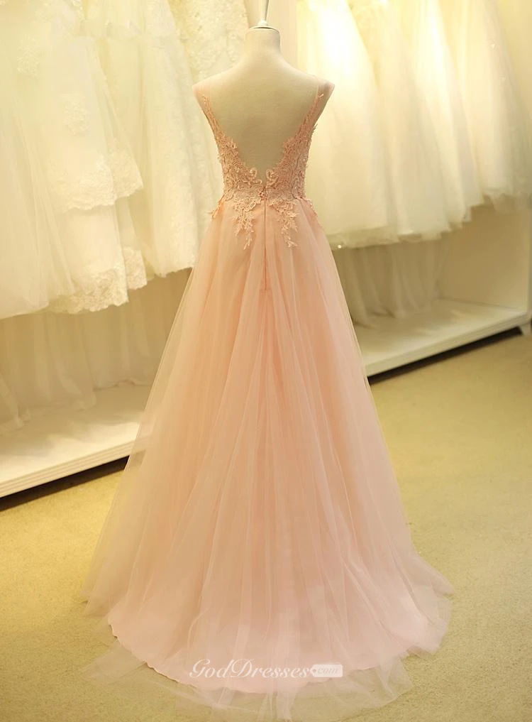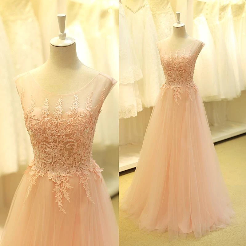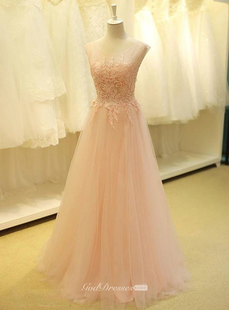 Lovely Color Cap Sleeve Tulle Prom Dress With Lace Appliques