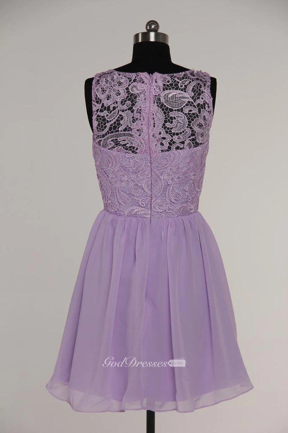 Lovely Illusion Sleeveless Chiffon Short Cocktail Dress With Lace