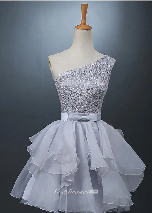 Lovely One-shoulder Short Chiffon Homecoming Dress Lace-up With Bowknot